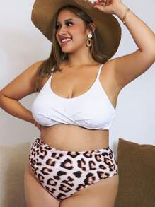 Plus Size Leopard Twist Front Bikini Set Summer Beach
