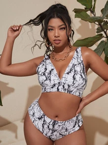 Plus Size Marble Print High Waisted Bikini Set Summer Beach
