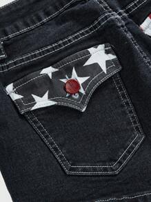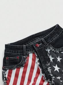 ROMWE Avant Plus Size Retro American Flag Print Distressed Denim Shorts