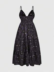 Goth Plus Size Retro Moon & Plant Print Sleeveless Dress