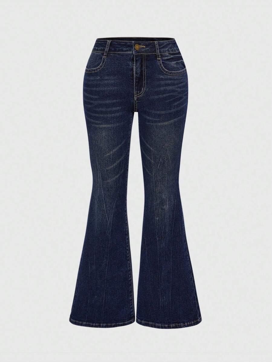 Grunge Punk Plus Size Retro Y2K Baddie UK Flag Design Rivet Skinny Flare Jeans