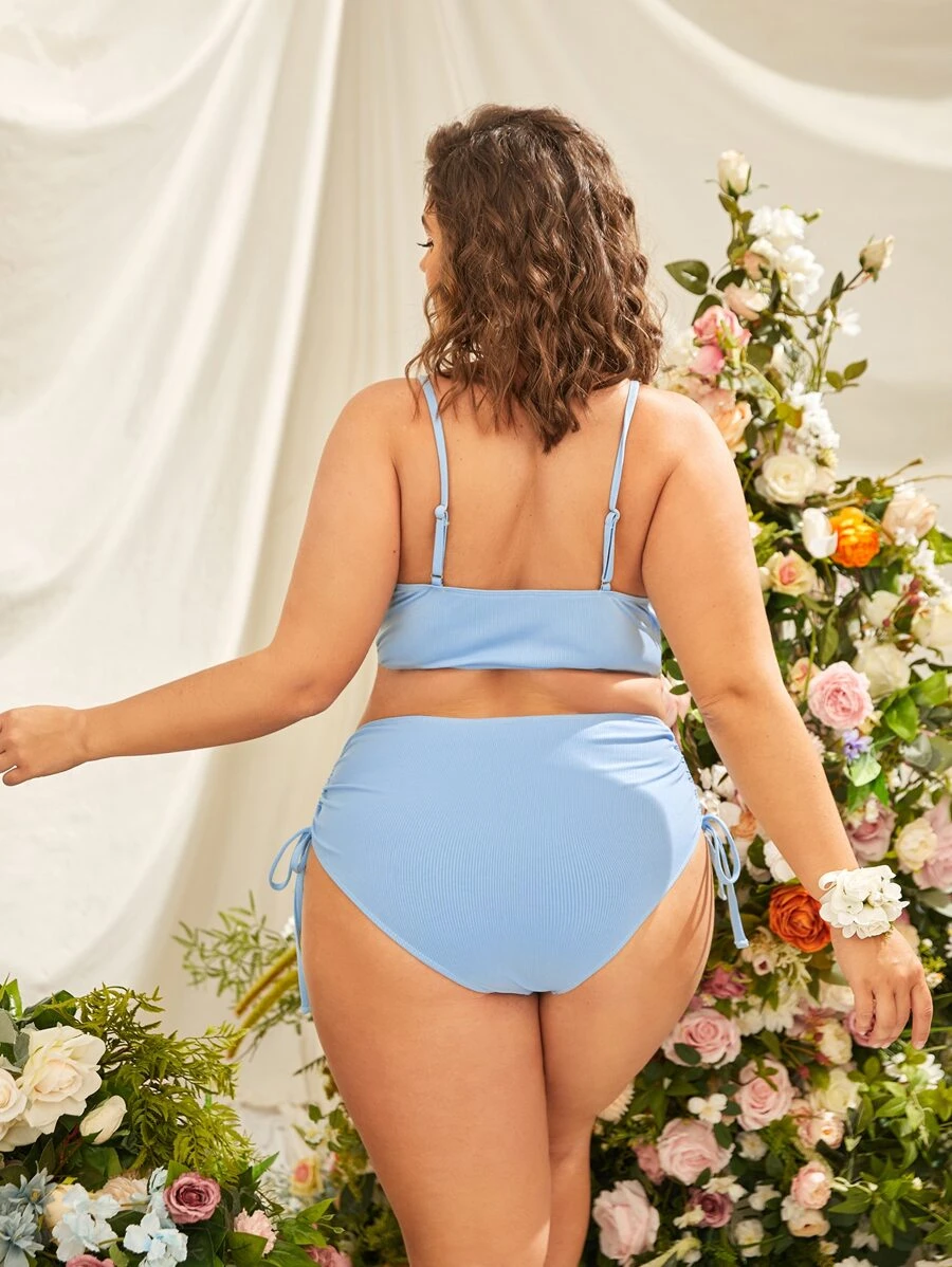 Plus Size Rib High Waisted Bikini Set Summer Beach