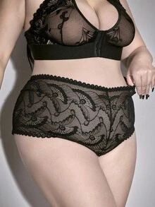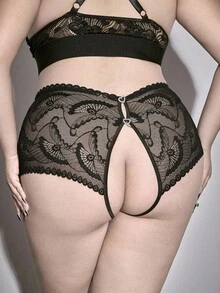 ROMWE Avant Plus Size Romantic Lace Sheer Heart Metallic Sexy Panties