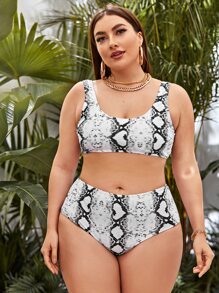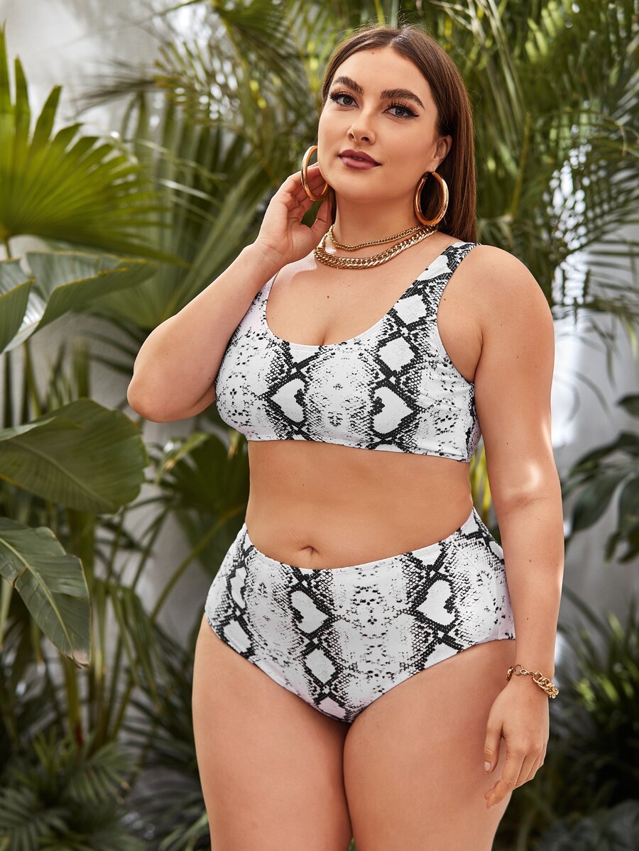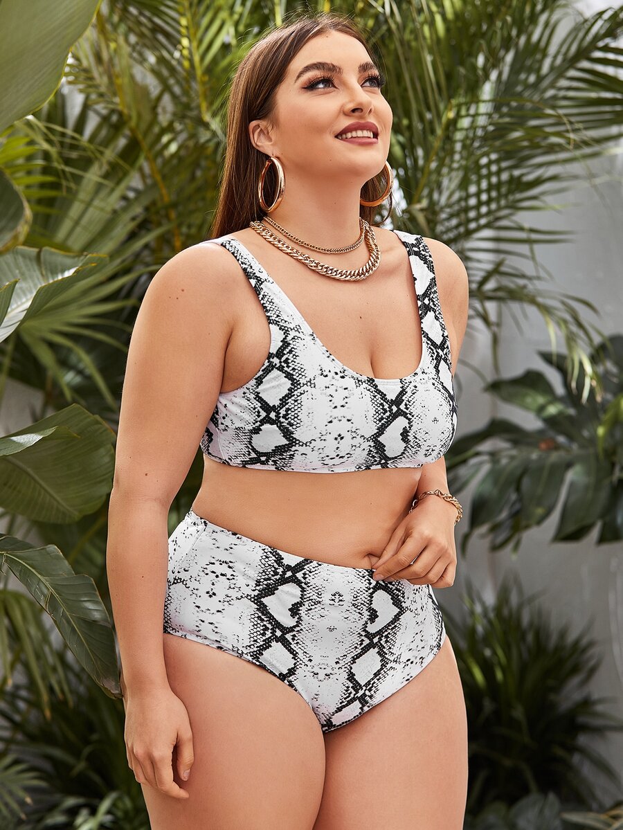 Plus Size Snakeskin Print Bikini Set Summer Beach