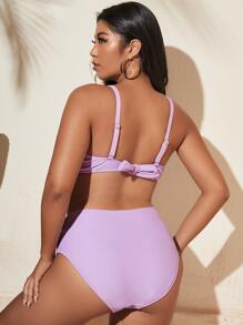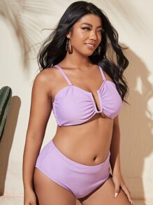 Plus Size Solid V Wired Bikini Set Summer Beach