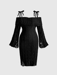Goth 1pc Plus Size Women Shoulder Ripped Design Shoulder Strap Bodycon Dress