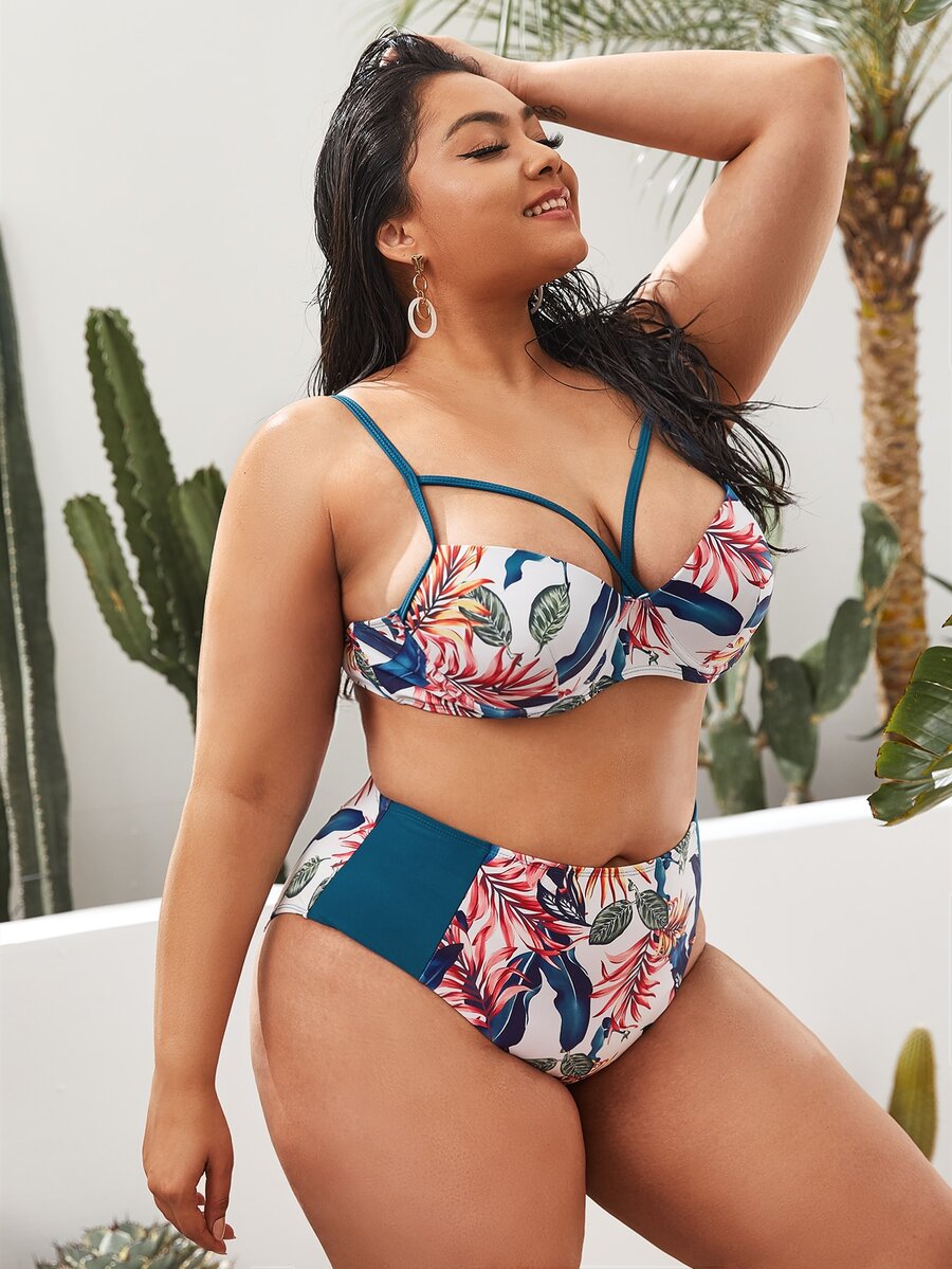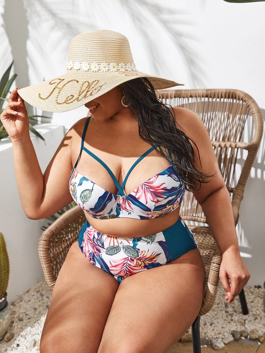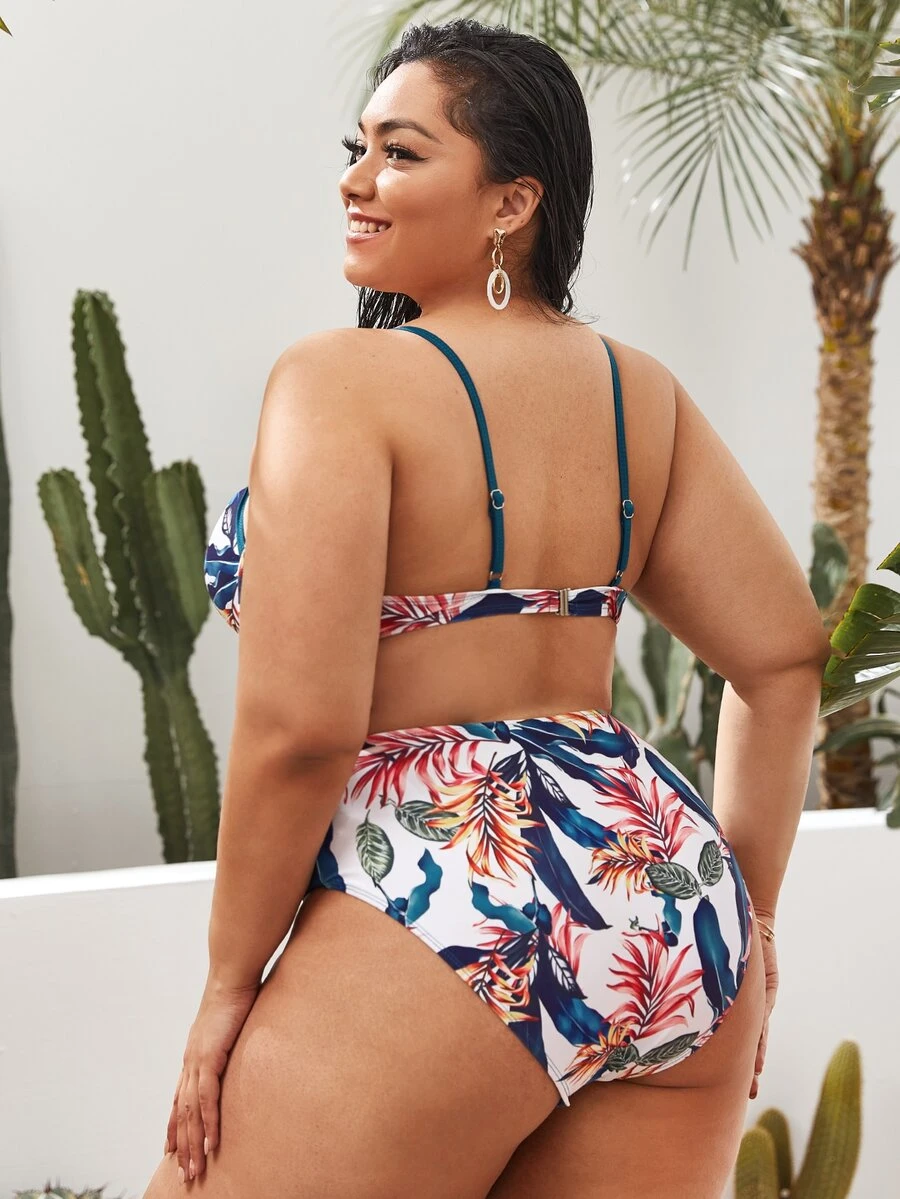 Plus Size Tropical Underwire Bikini Swimwear Summer Beach
