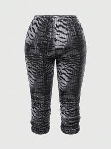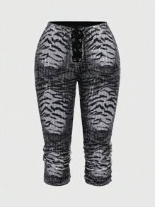 J-Fashion Plus Size Vintage Low Waist Leopard Print Sequin Tie Waist Women Capri Pants