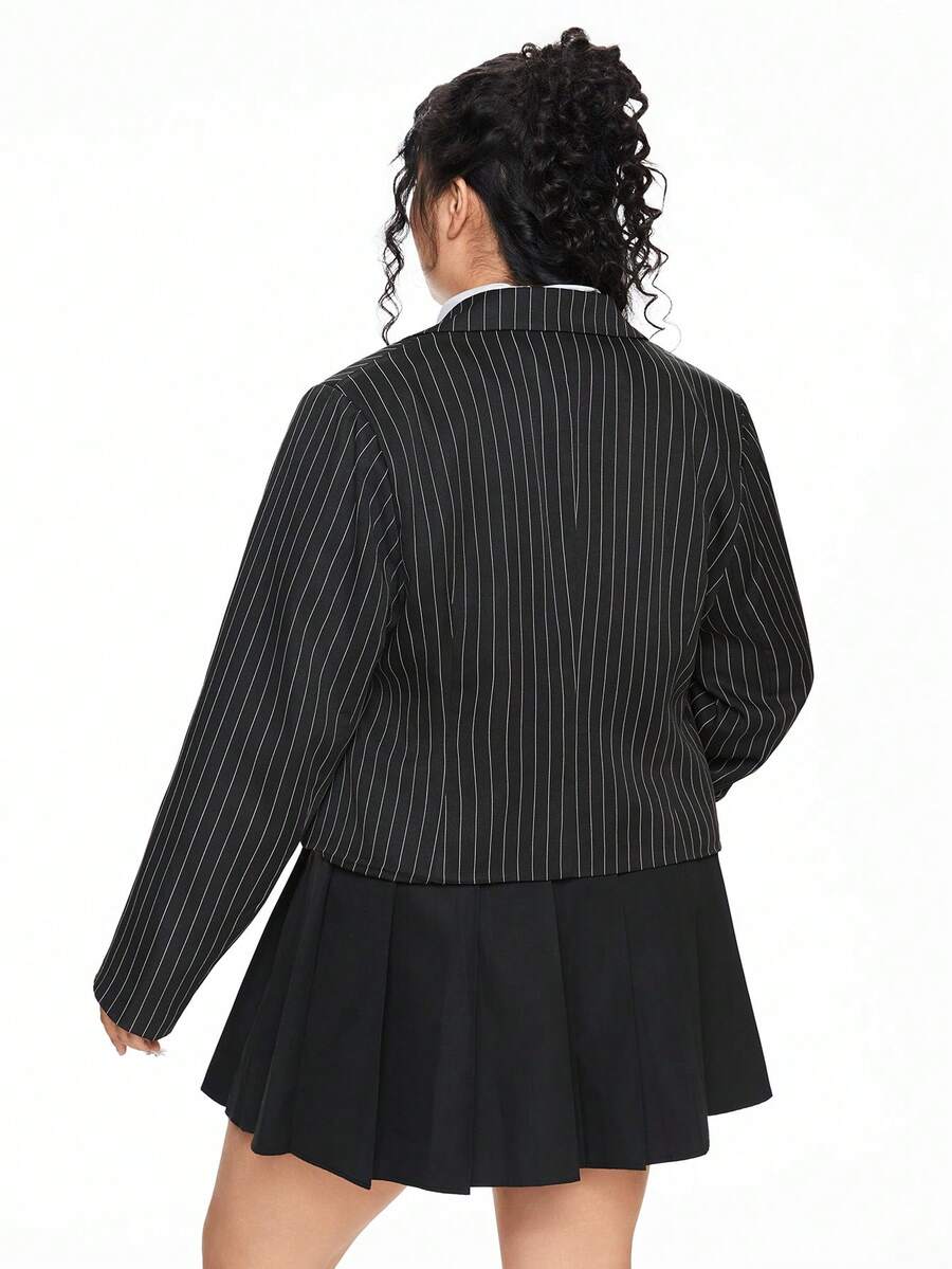 Plus Size Vintage Striped Cinched Waist Long Sleeve Blazer