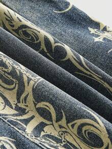 Grunge Punk Plus Size Vintage Washed Print Flare Jeans
