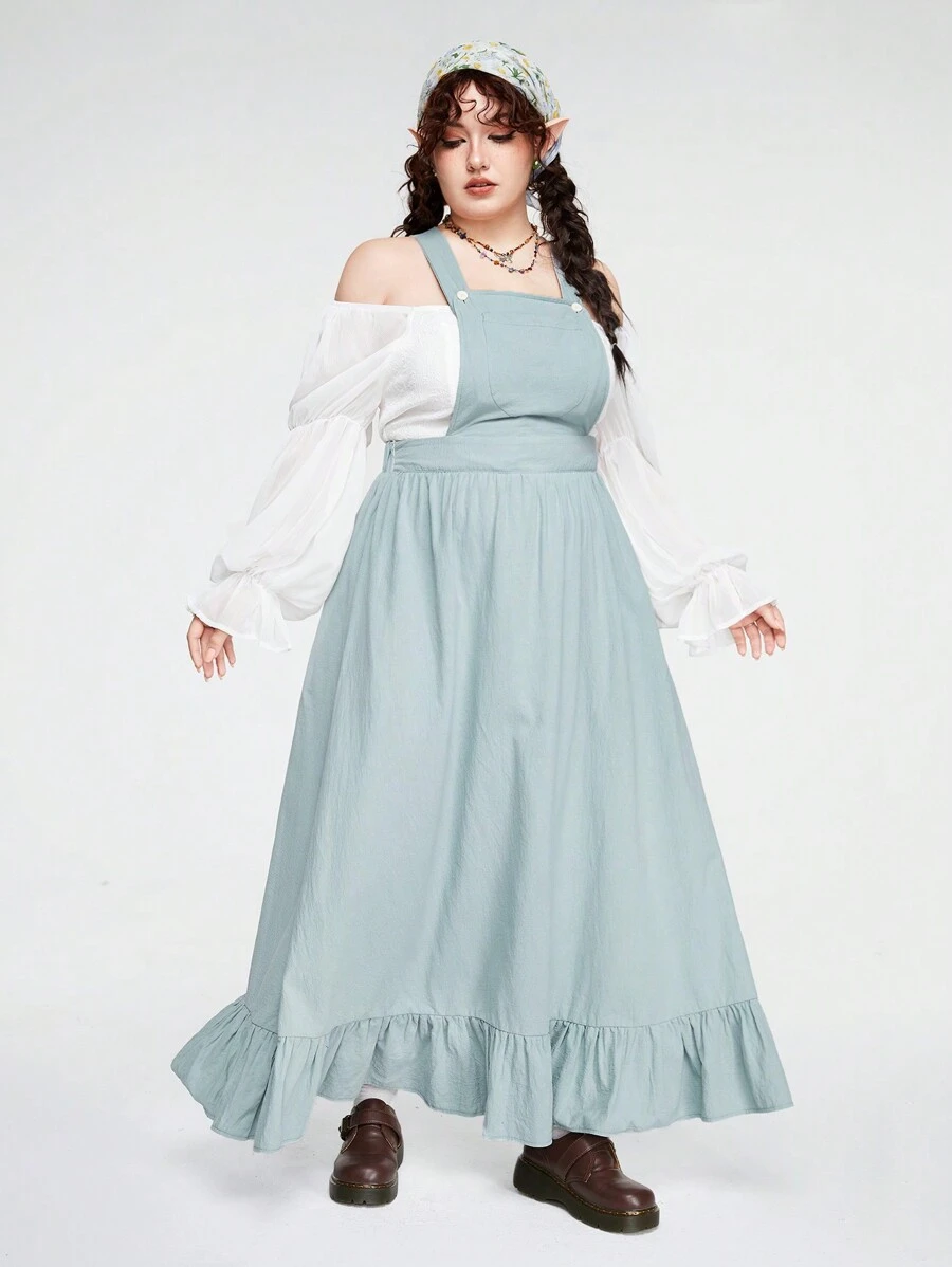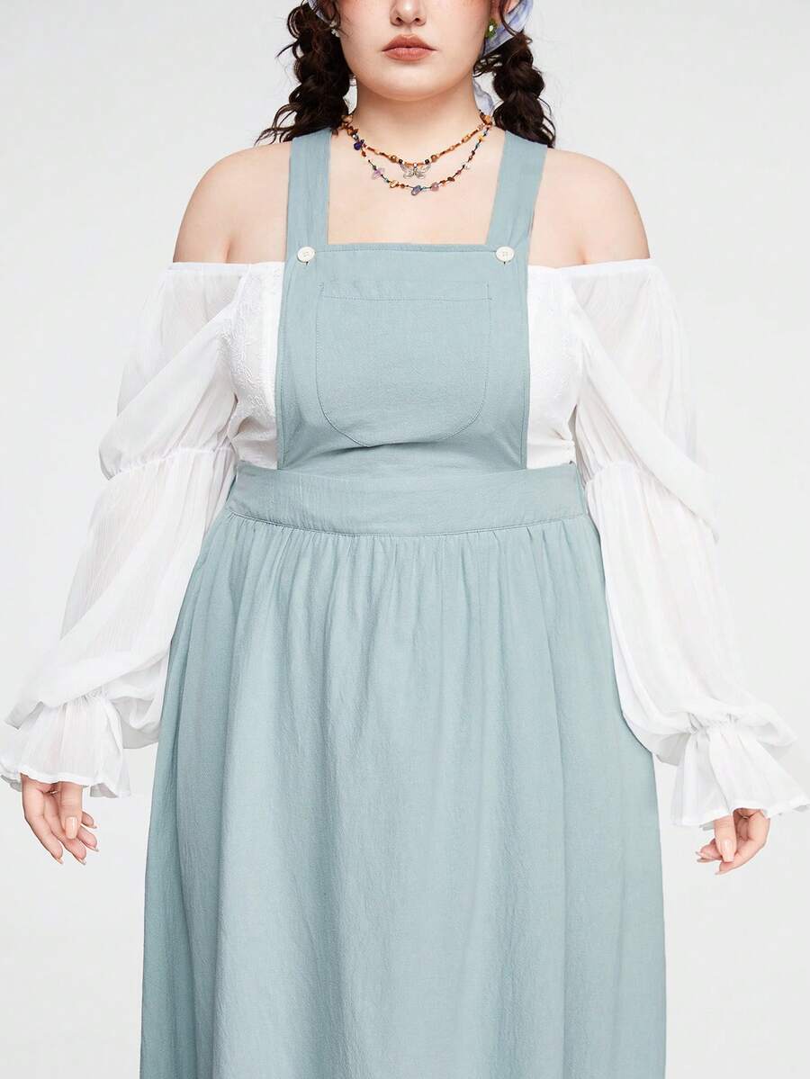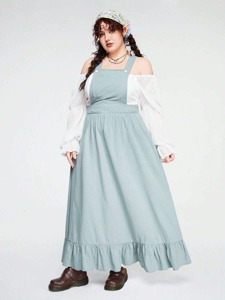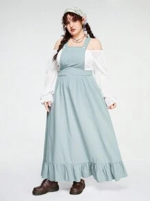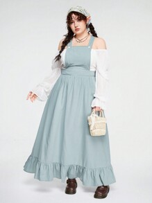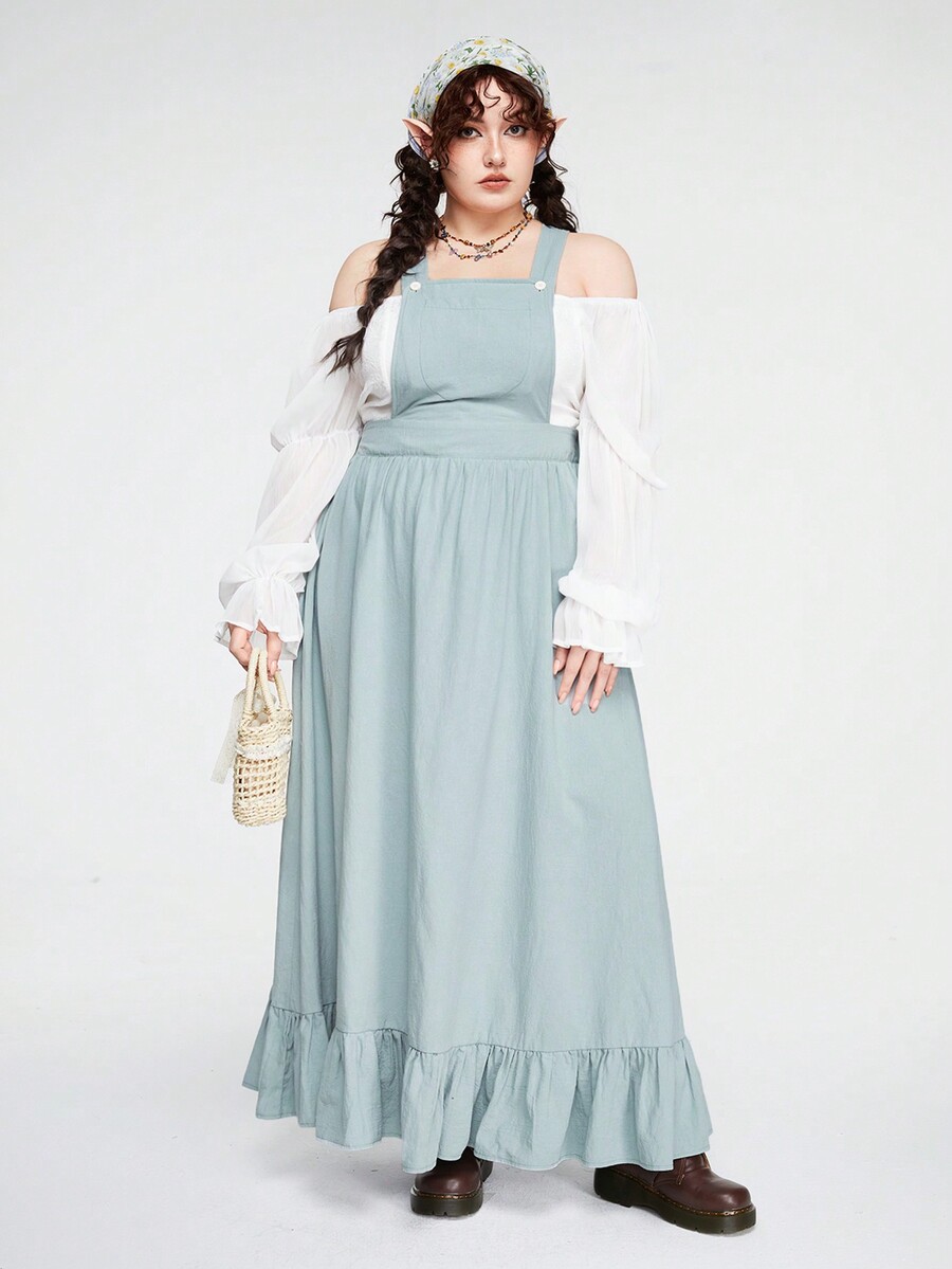 Fairycore Plus Size Women's Solid Color Suspender Dress