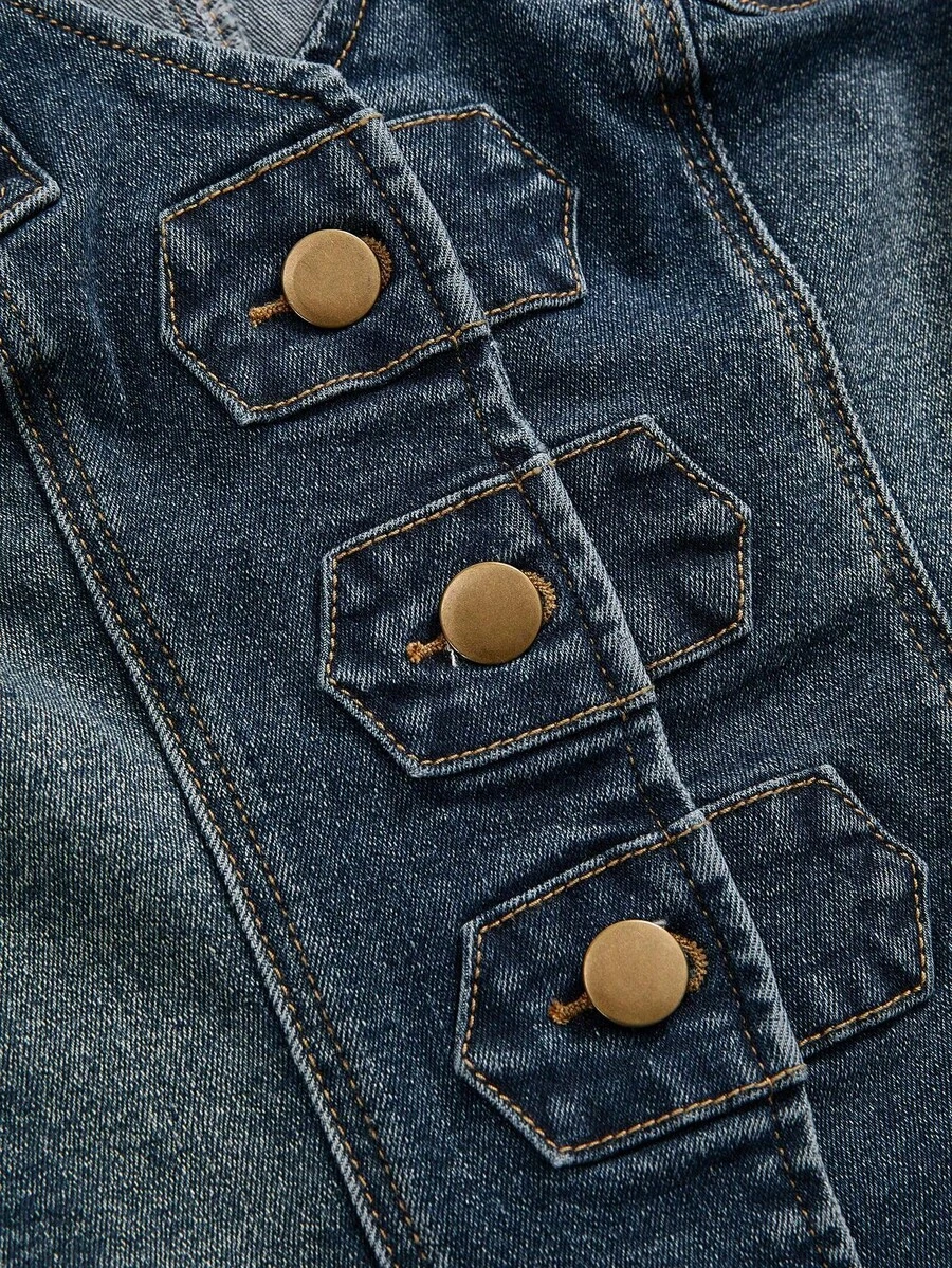Hippie Plus Size Women's Y2K Vintage Sleeveless Denim Jacket, Suitable For Spring And Autumn