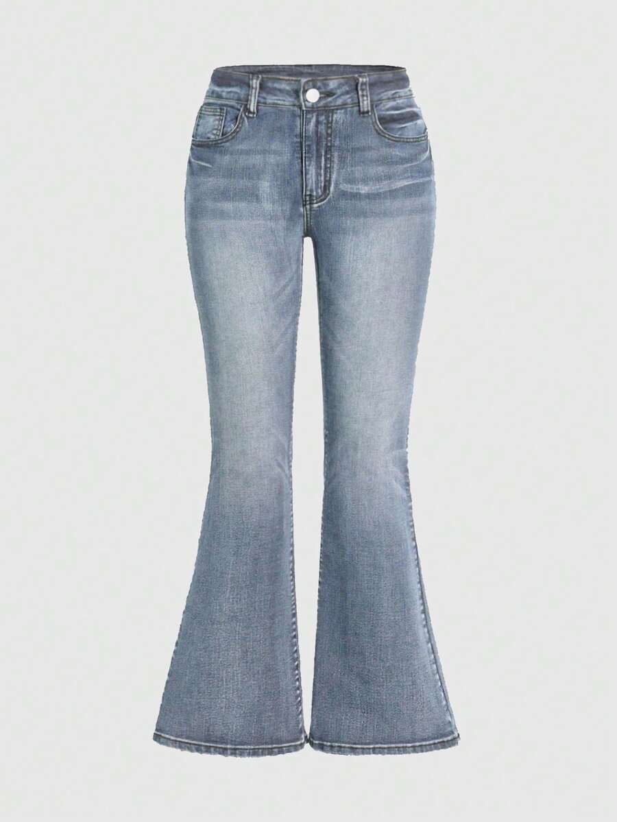 Grunge Punk Plus Size Women Casual Punk Embroidered Flare High Stretch Jeans