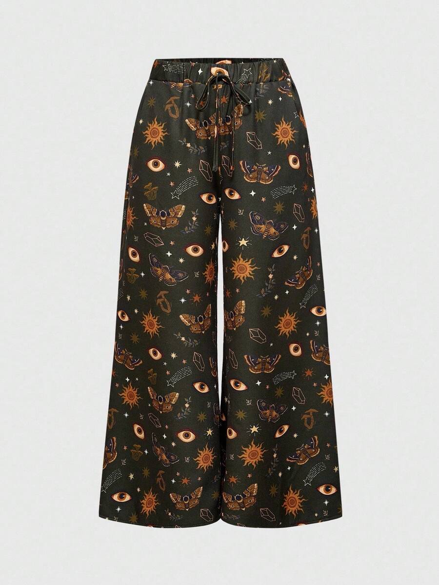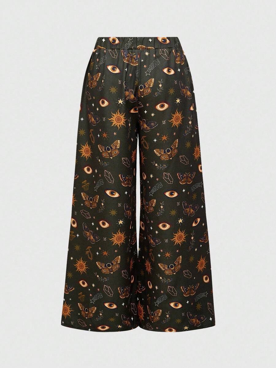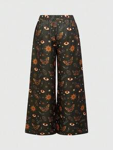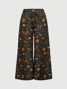 Fairycore Plus Size Women Fairycore Butterfly & Moth Floral All-Over Print Wide Leg Pants