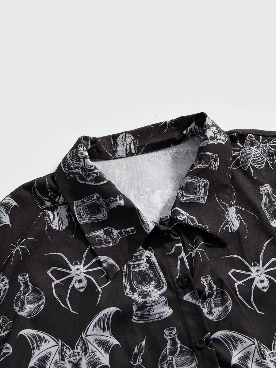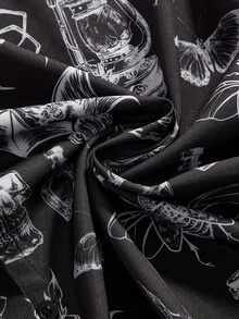 Plus Size Women Gothic Skull & Butterfly Print Vintage Casual Shirt