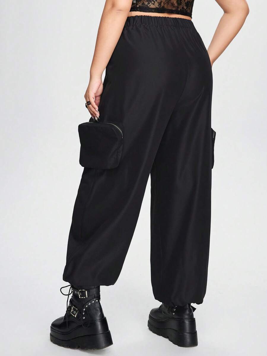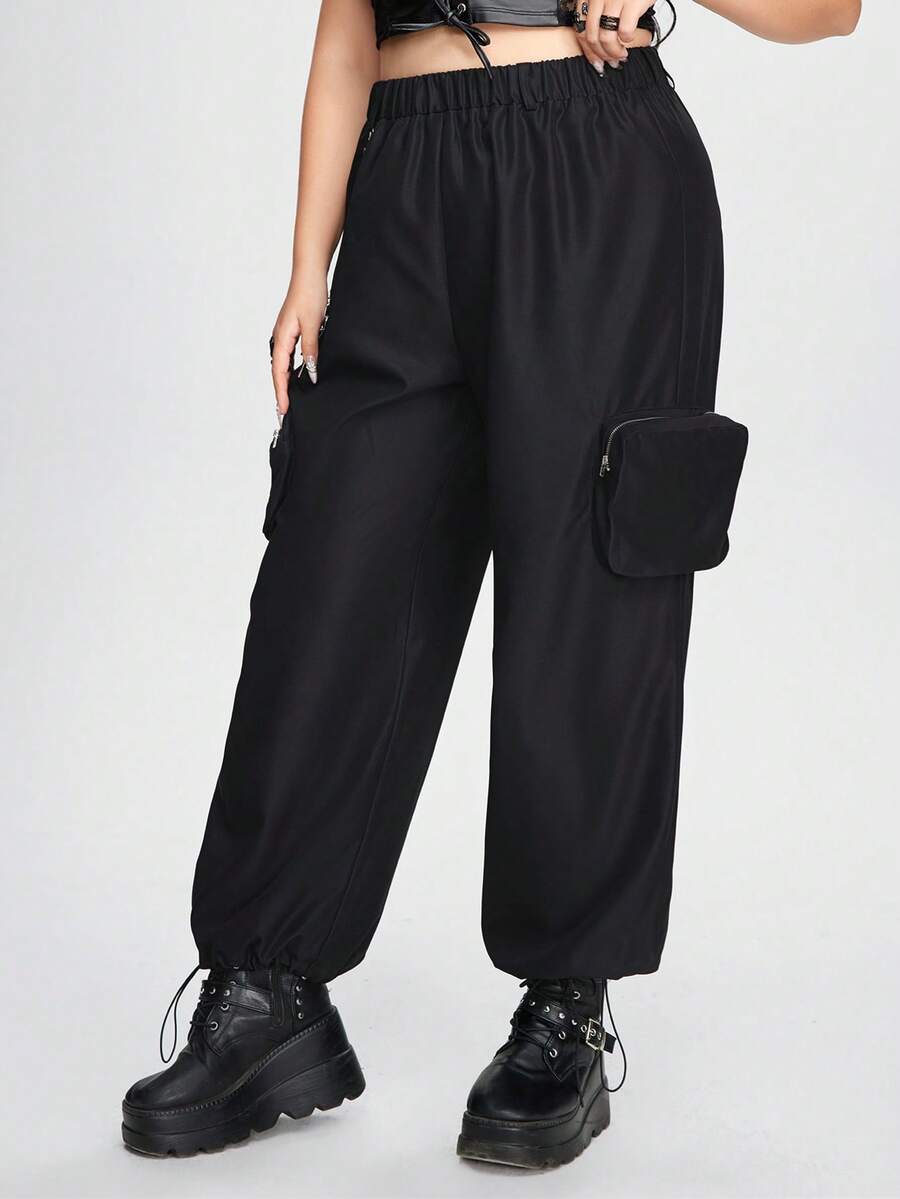 Grunge Punk Plus Size Women's Casual Jogger Pants With Metallic Chain Decoration