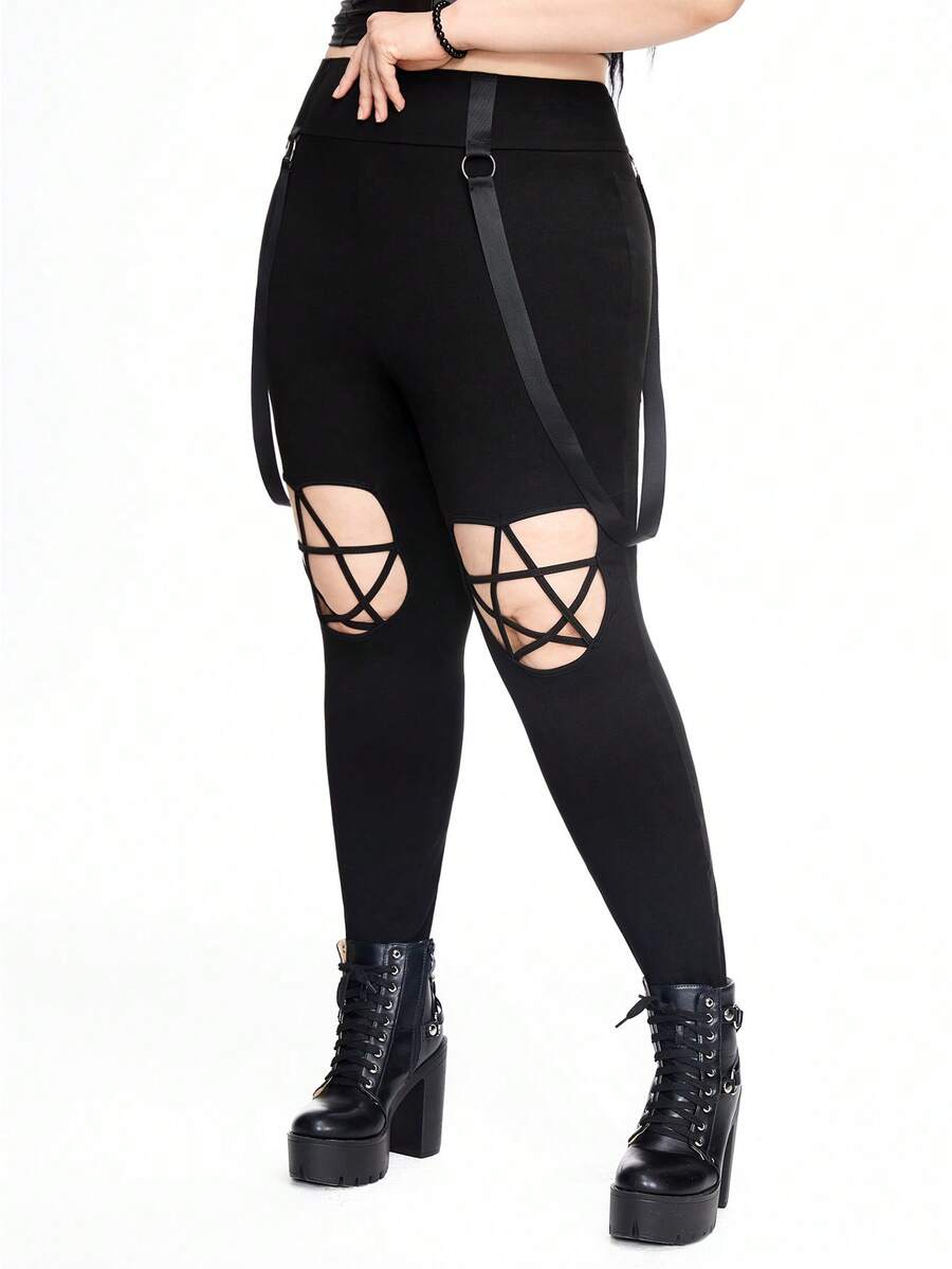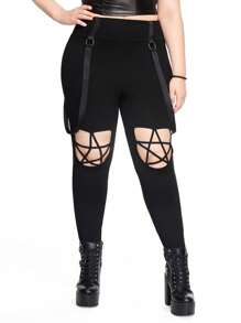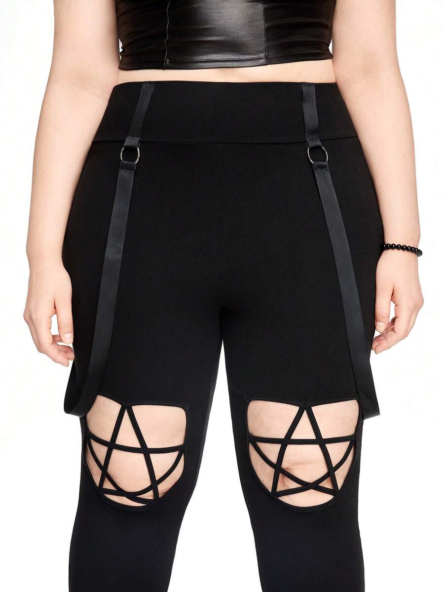 Plus Size Women's Gothic Hollow-Out Pentagram Shape Tight Elastic Waistband Footed Leggings