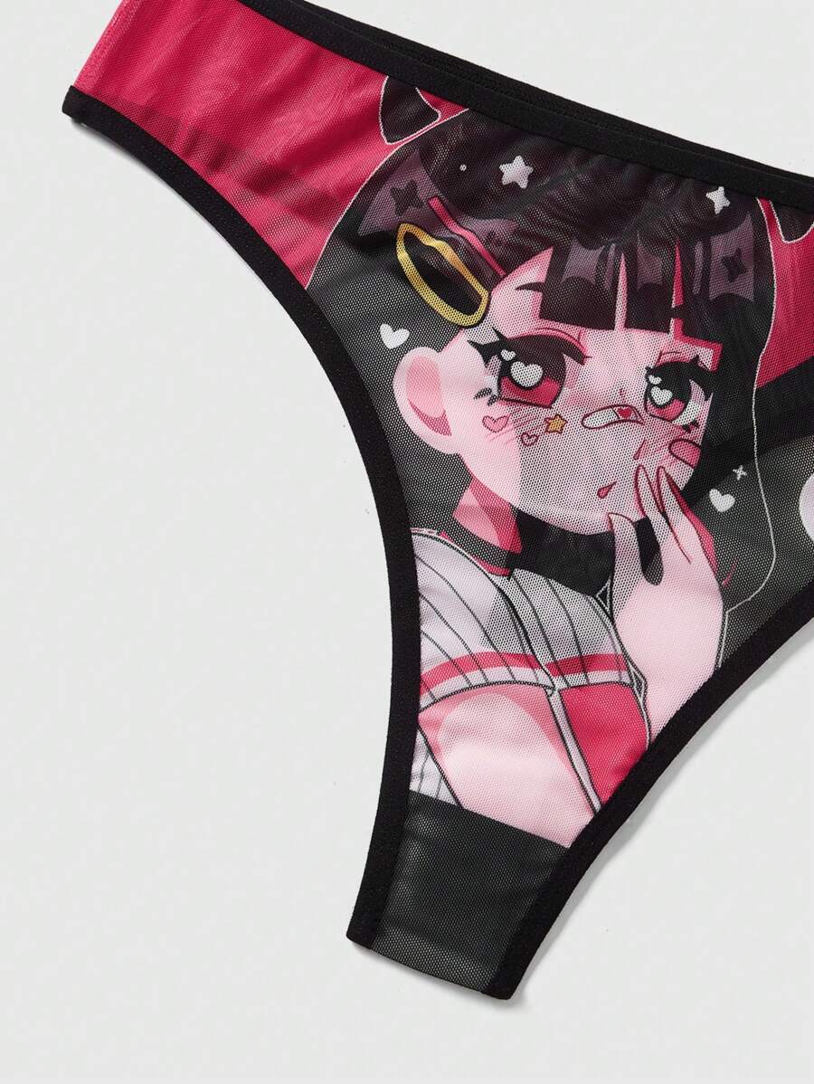 Cherry Plus Size Women's & Teenager Girls' Cartoon Character Printed Triangle Mesh Panties