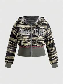 ROMWE Avant Plus Size Y2K Millennium Vintage Rhinestone Camo Print Long Sleeve Sweatshirt