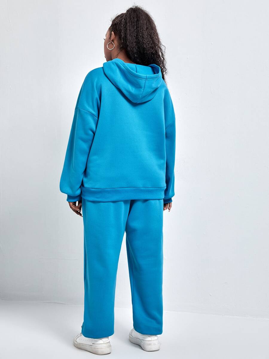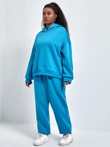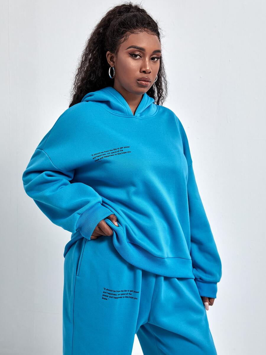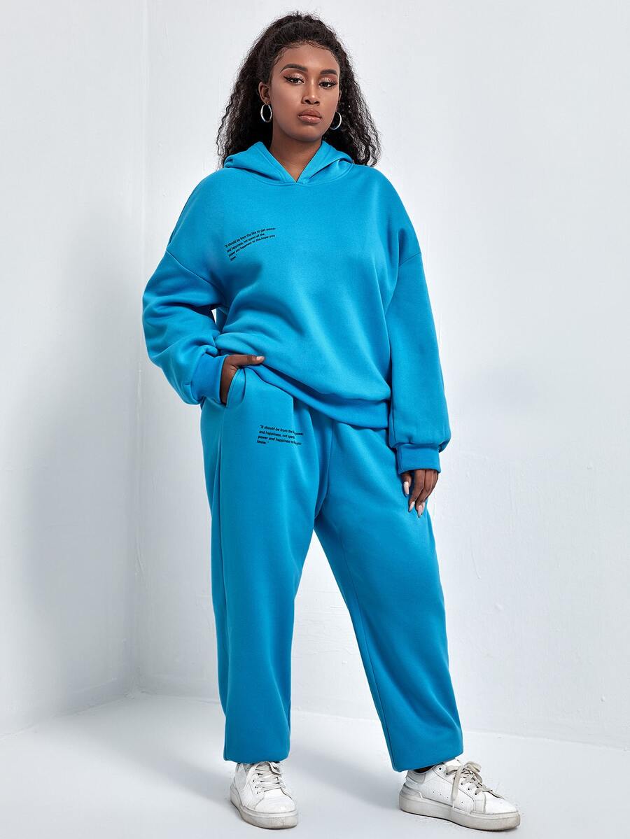 Plus Slogan Graphic Drop Shoulder Hoodie With Joggers