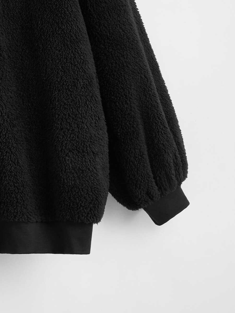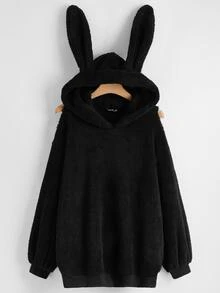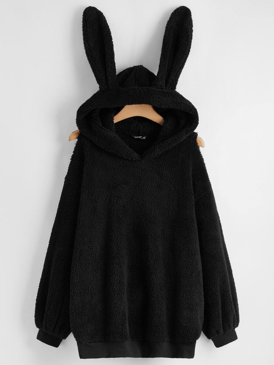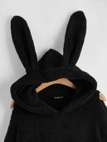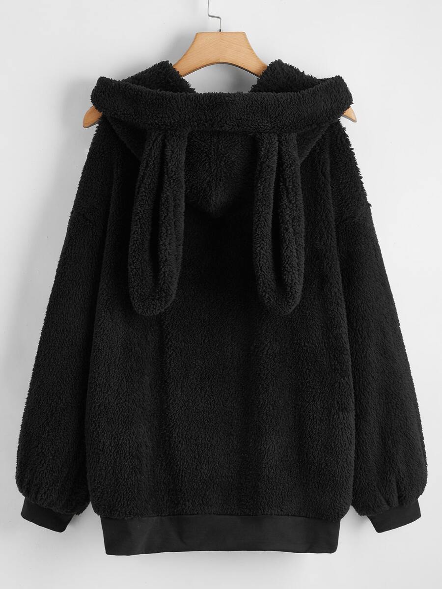 Plus Solid 3D Ears Design Teddy Hoodie