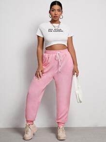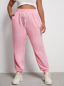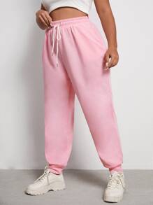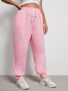 Plus Solid Drawstring Waist Sweatpants