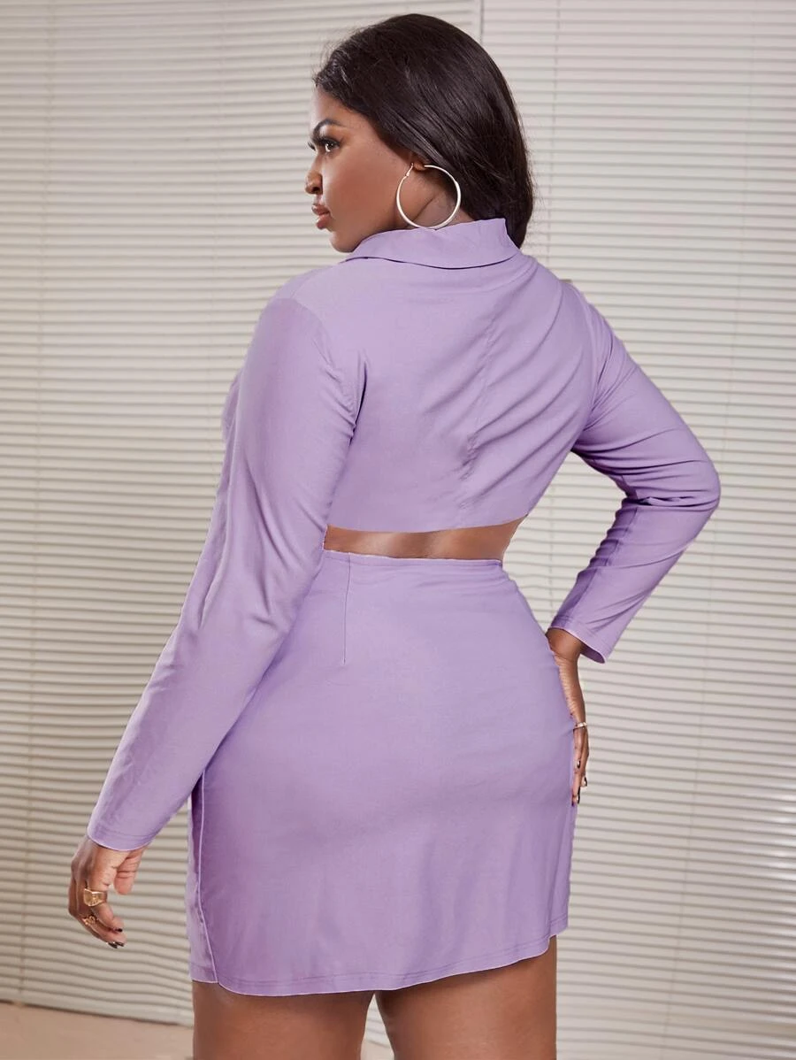 Plus Solid Lapel Collar Blouse & Skirt Set