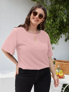 Plus Solid Peekaboo Blouse