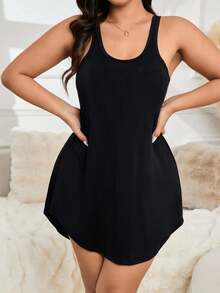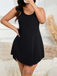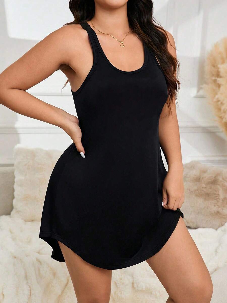 Plus Solid Racer Back Pajama Nightdress