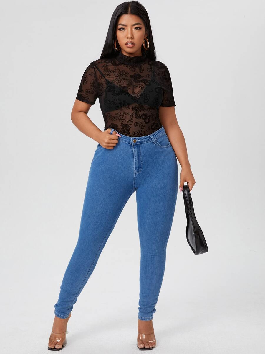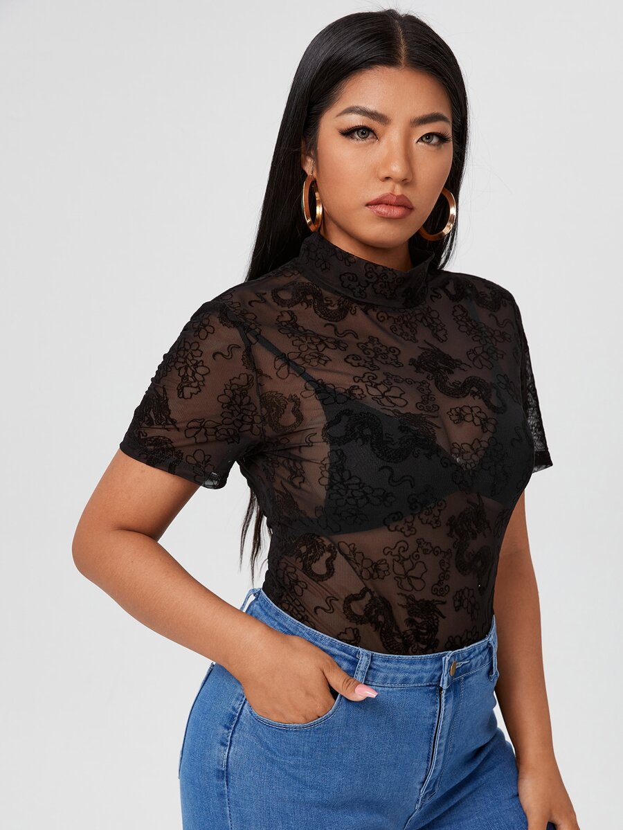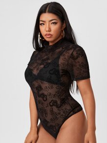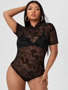 Plus Solid Sheer Mesh Bodysuit