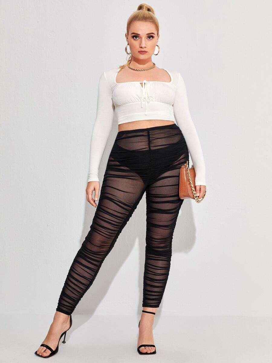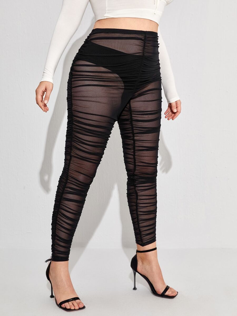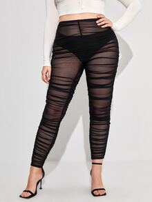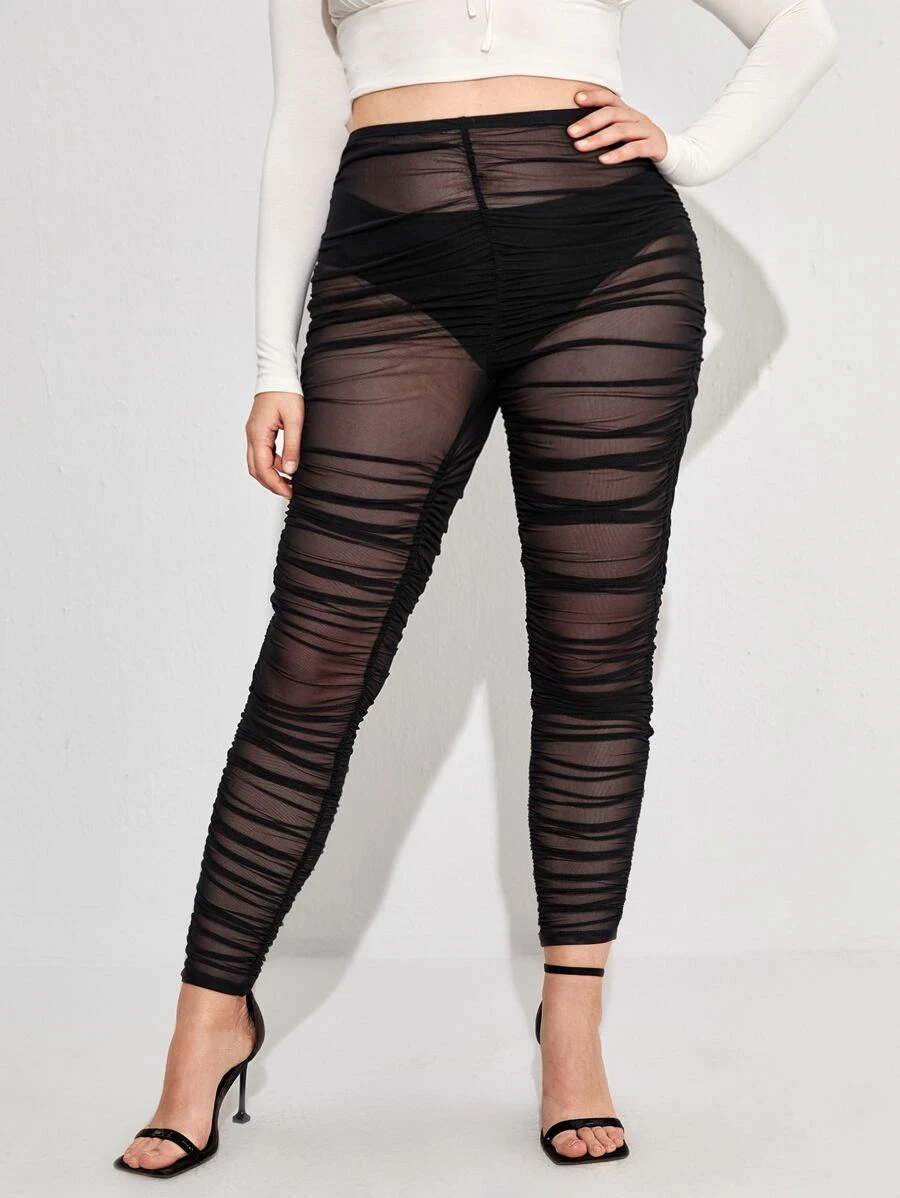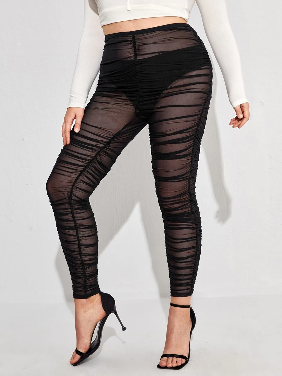 Plus Stacked Mesh Leggings Without Panty