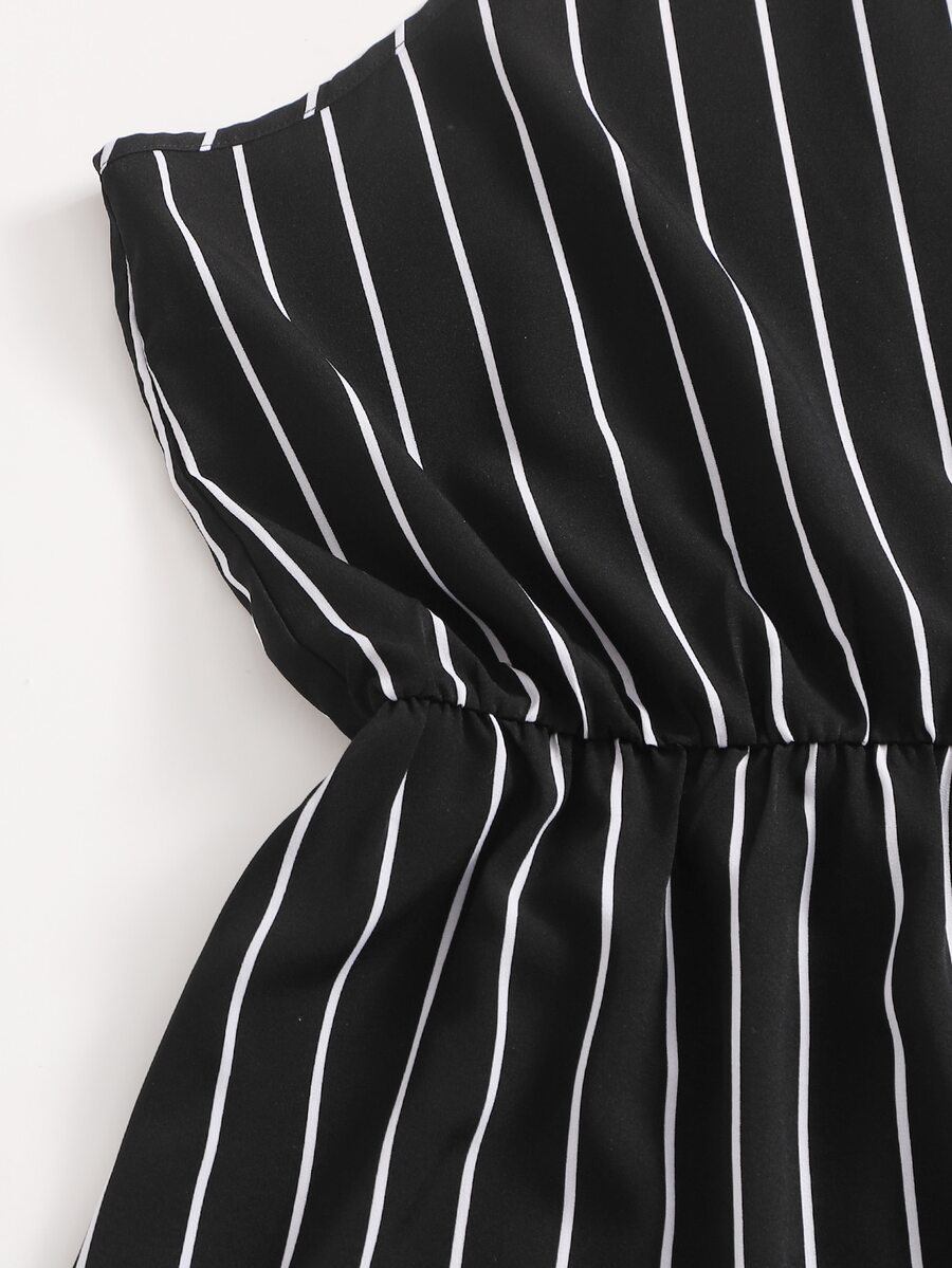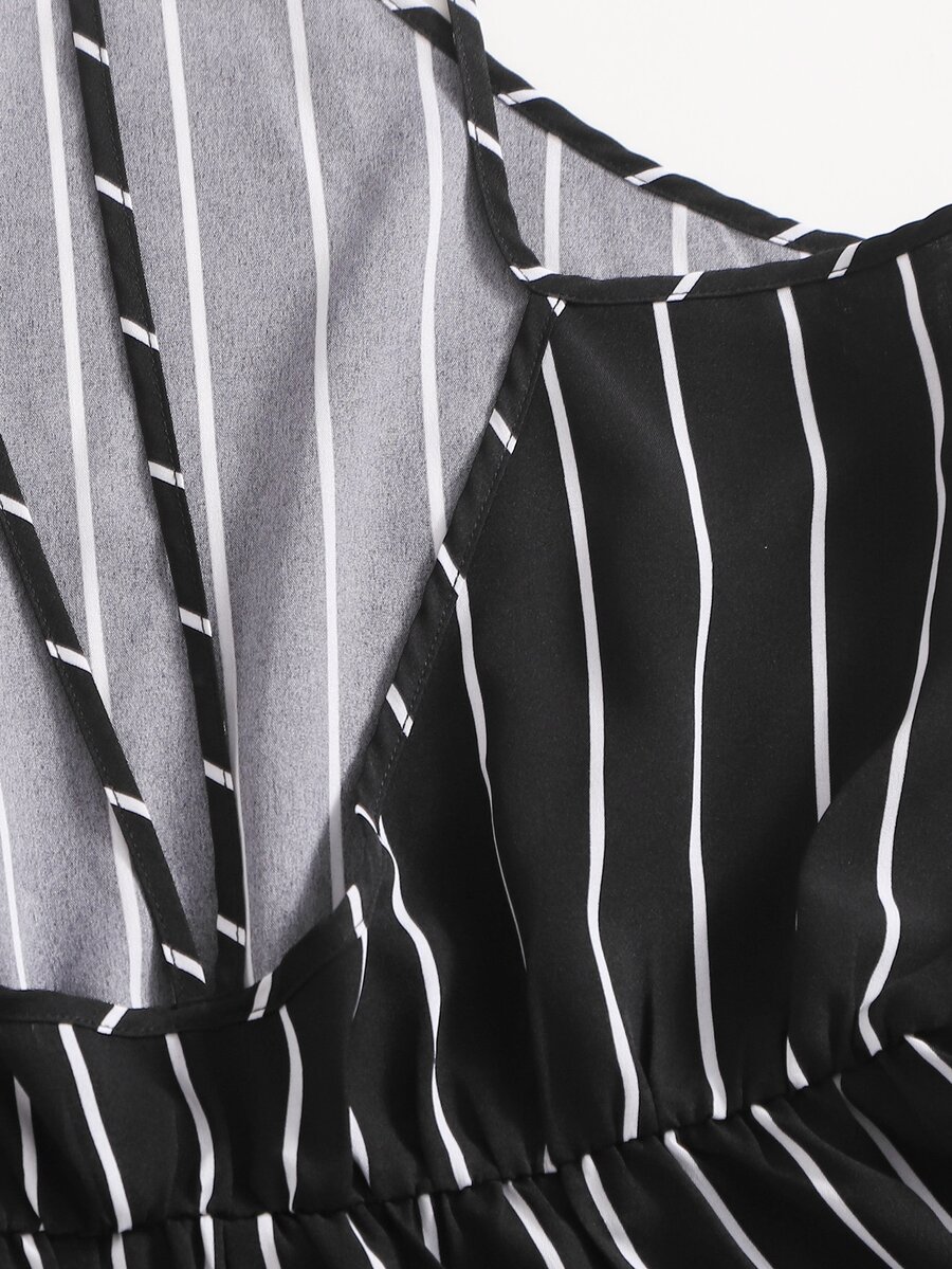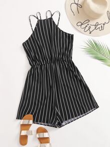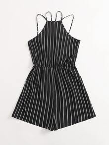 Plus Striped Double Straps Halter Romper