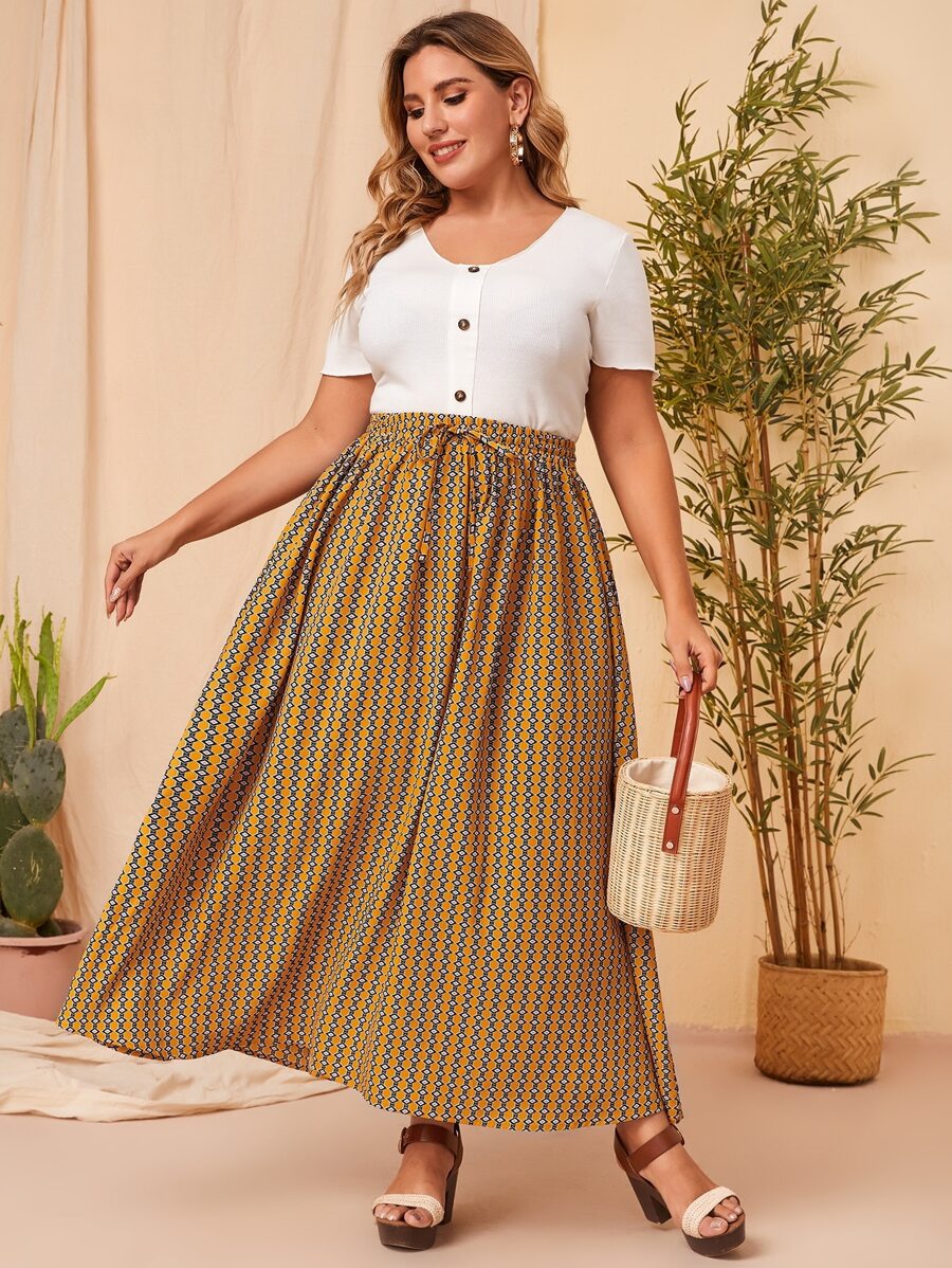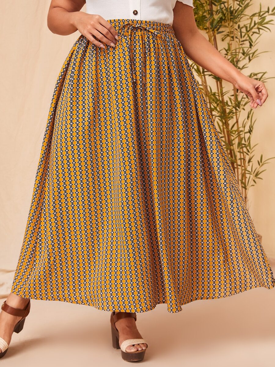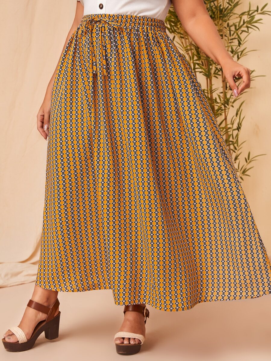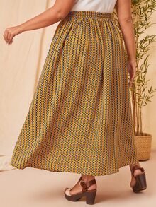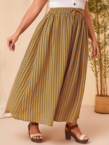 Plus Striped & Geo Print Tie Waist Skirt