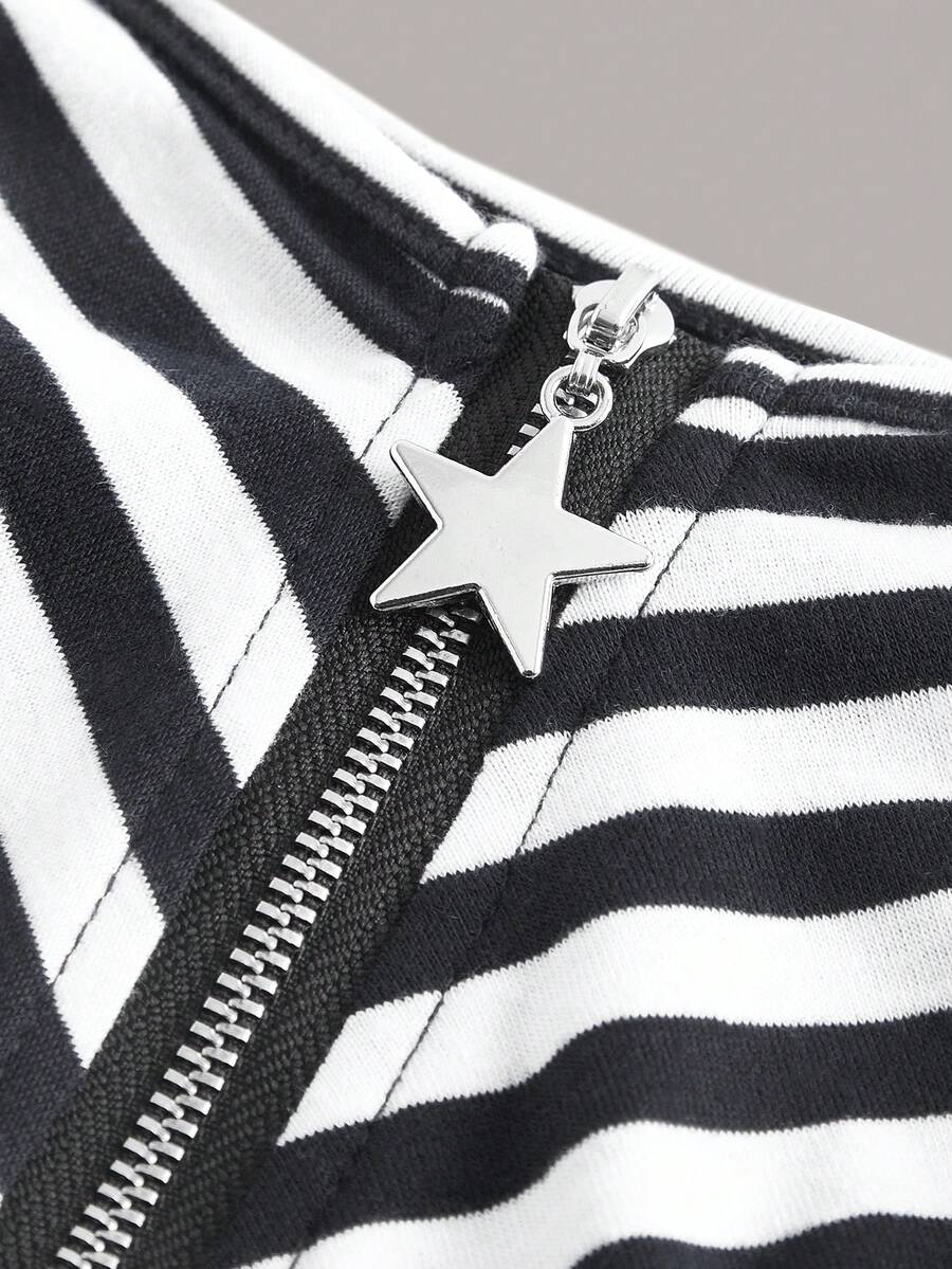 Plus Striped Print Zip Up Asymmetrical Hem Tank Top