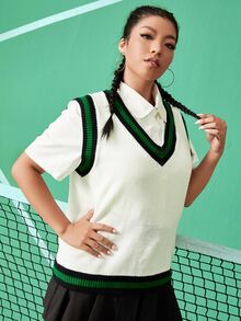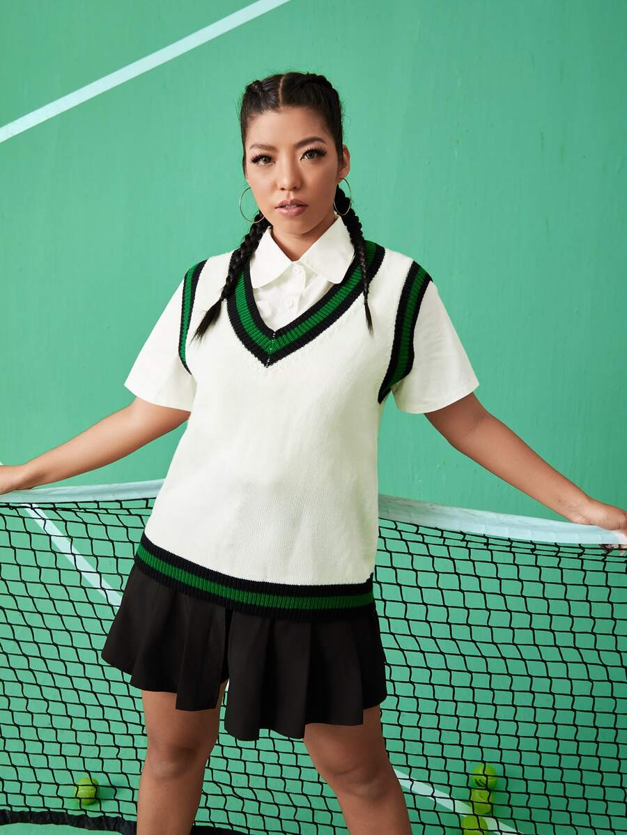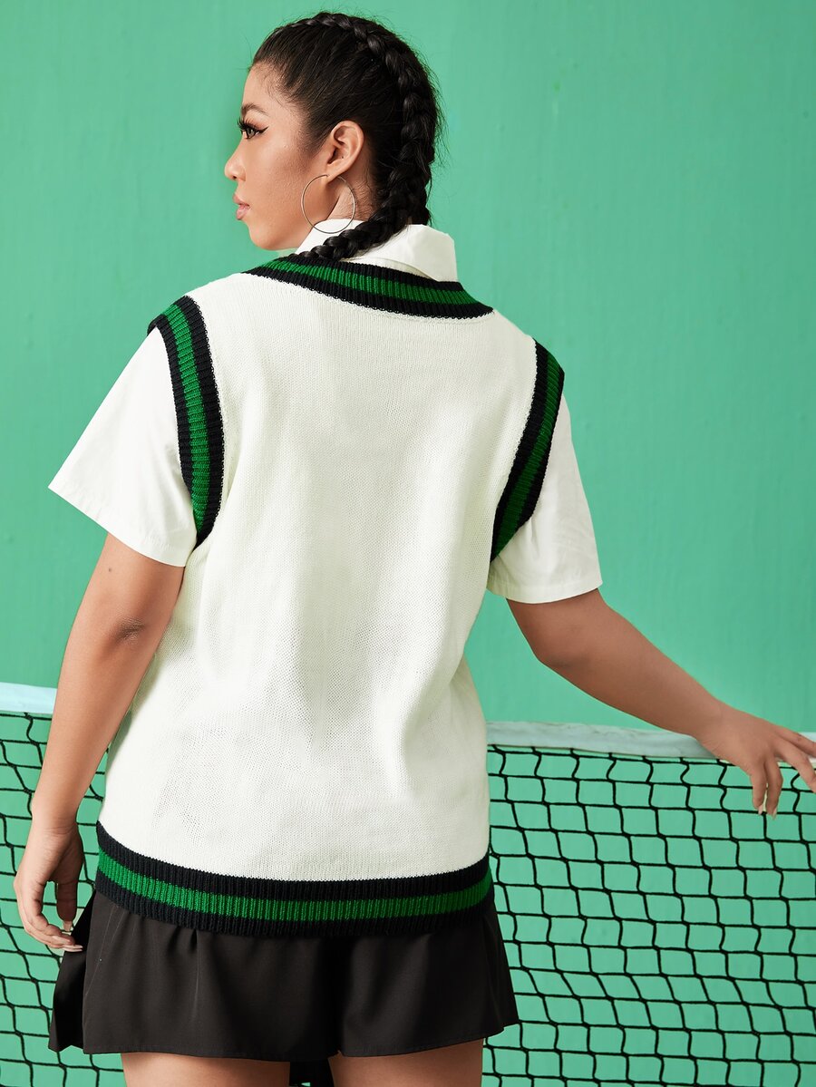 Plus Striped Rib Knit Sweater Vest