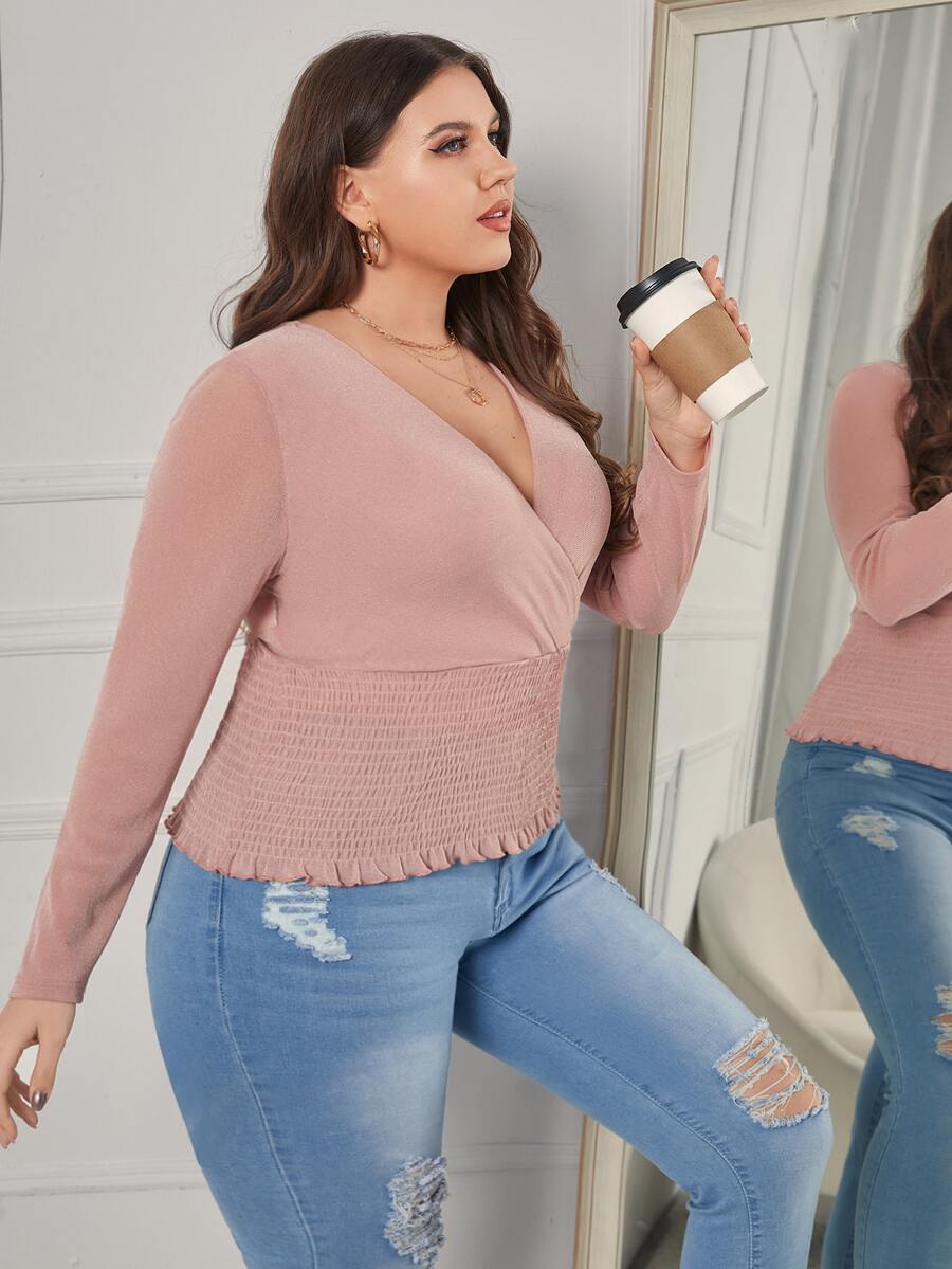 Plus Surplice Neck Shirred Frill Trim Tee