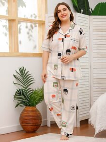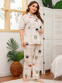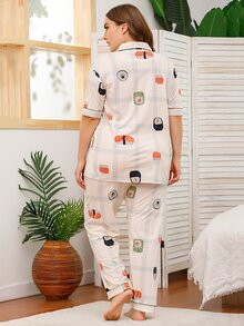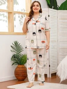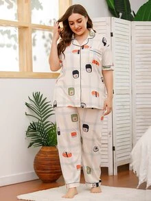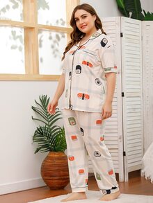 Plus Sushi Print Plaid Pajama Set