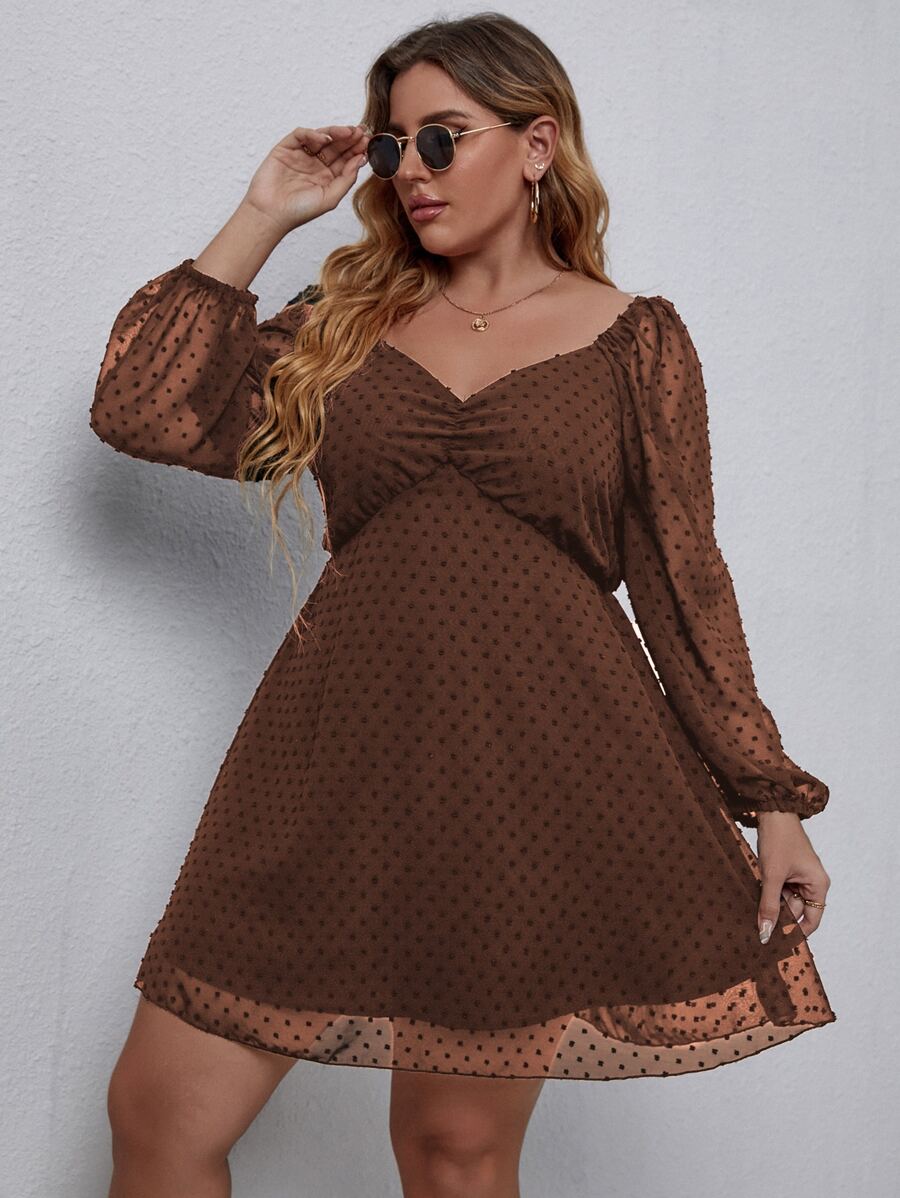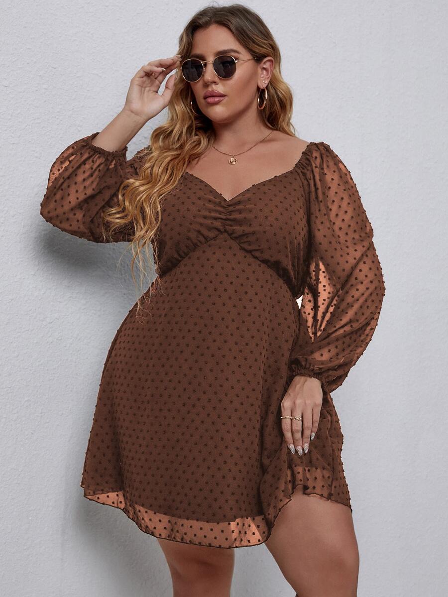 Plus Sweetheart Neck Swiss Dot Chiffon Dress