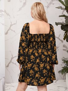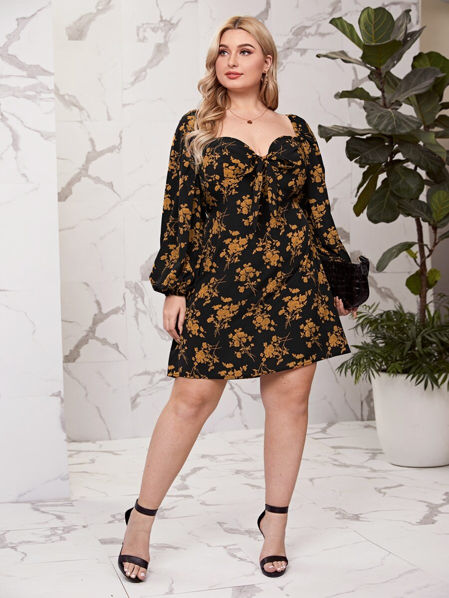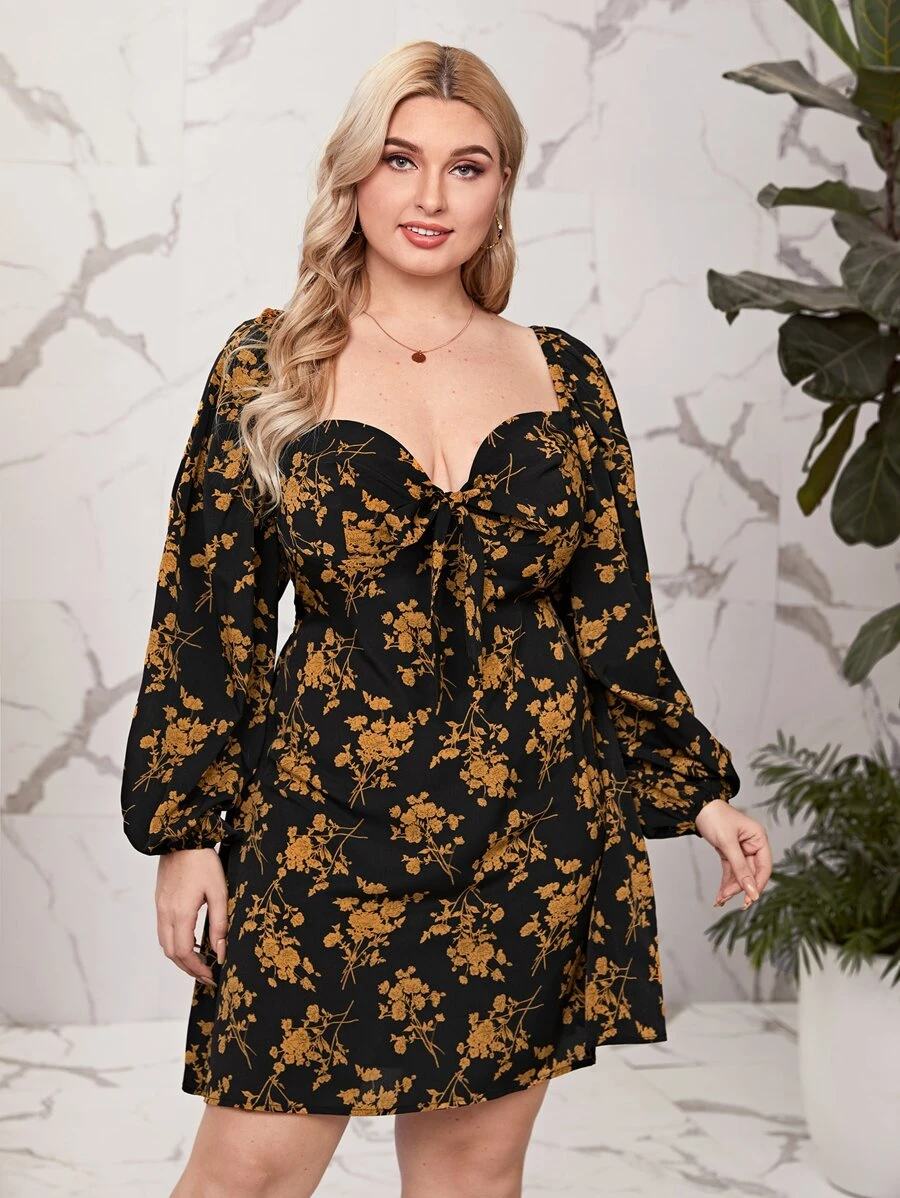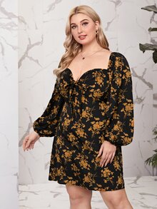 Plus Sweetheart Neckline Floral Print Knot Front Dress