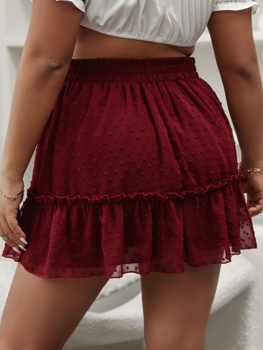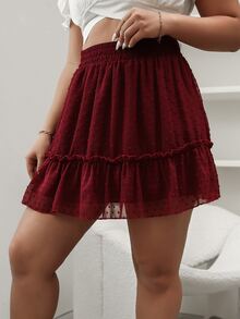 Plus Swiss Dot Frill Trim Ruffle Hem Chiffon Skirt