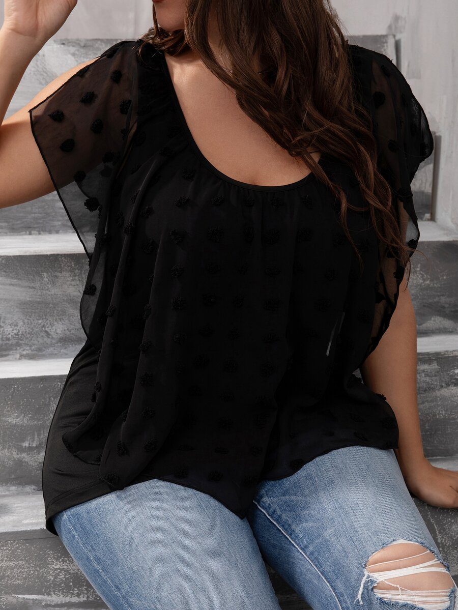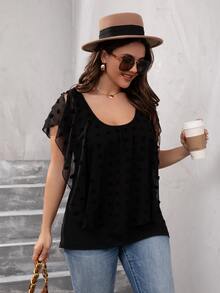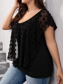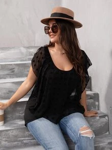 Plus Swiss Dot Scoop Neck Top