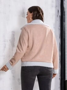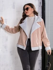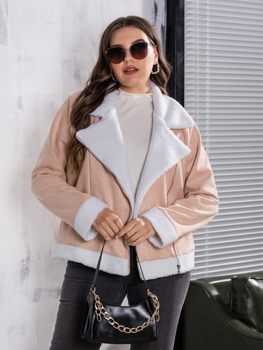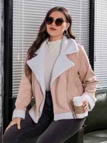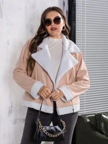 Plus Teddy Lined Zip Up Suedette Moto Jacket