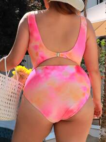 Plus Tie Dye Cut-Out One Piece Swimsuit, For Summer Beach Vacation