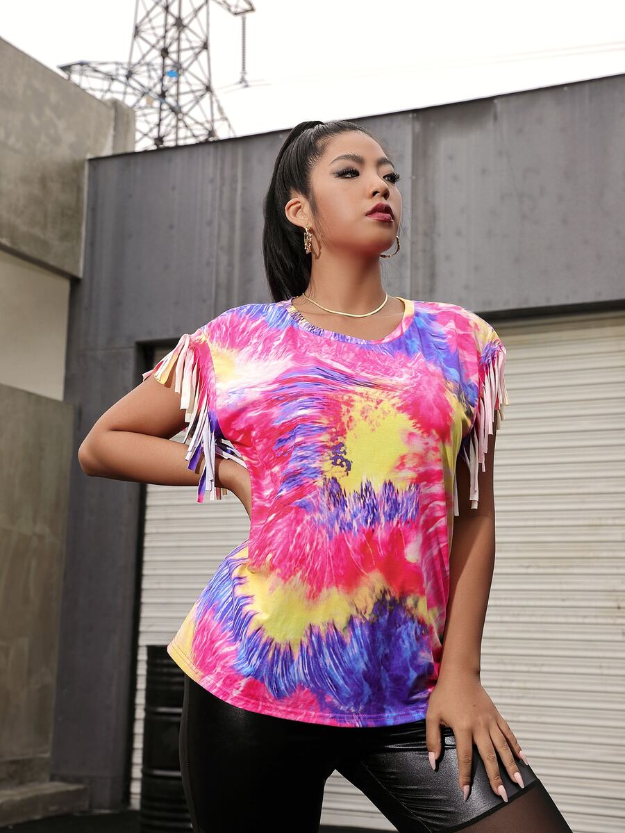 Plus Tie Dye Fringe Trim Tee