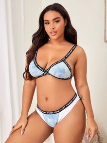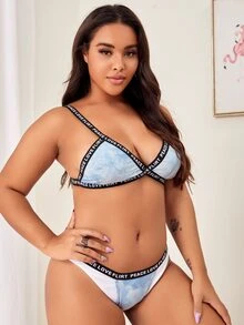 Plus Tie Dye Letter Tape Lingerie Set