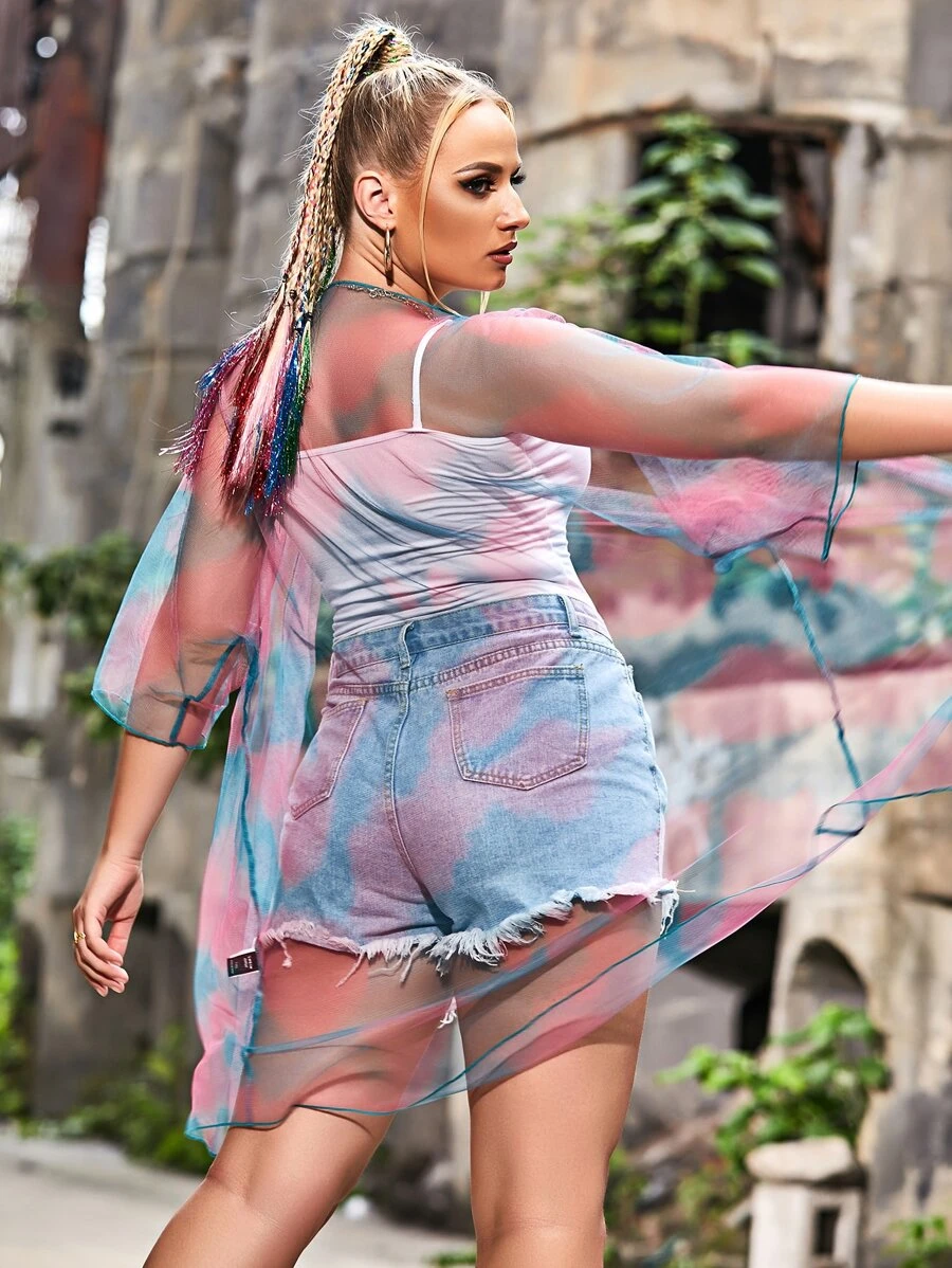Plus Tie Dye Sheer Mesh Kimono