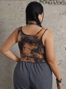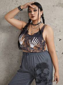 Grunge Punk Plus Tie Dye Skeleton Hand Print Crop Tank Top