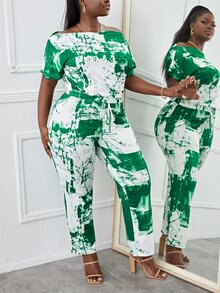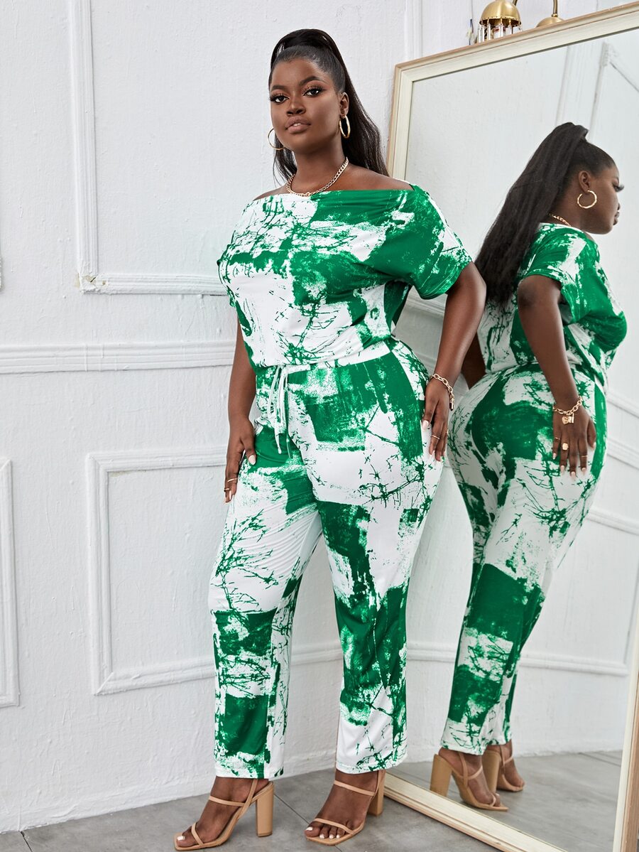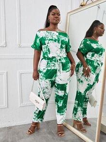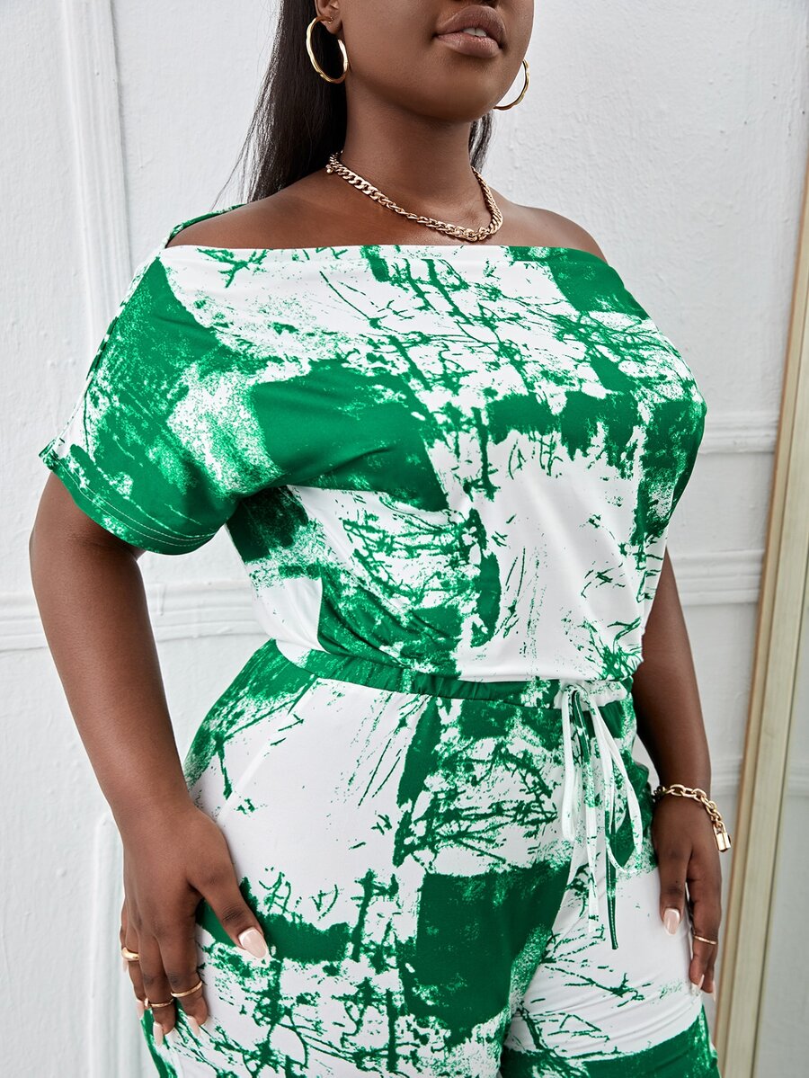 Plus Tie Dye Tie Front Bardot Jumpsuit