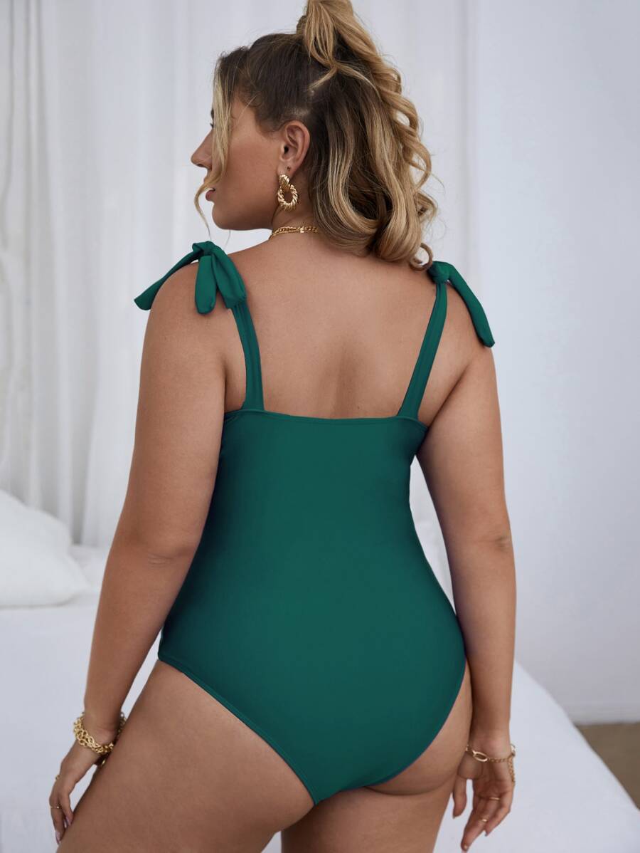 Plus Tie Shoulder One Piece Swimsuit