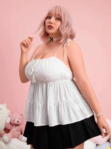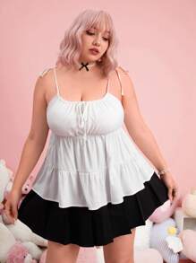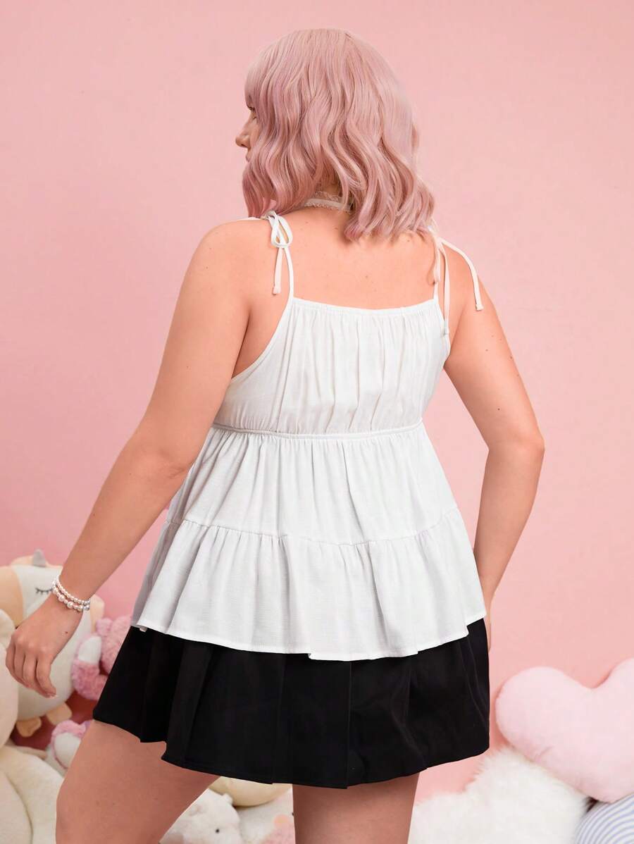 Kawaii Plus Tie Shoulder Ruffle Hem Cami Top
